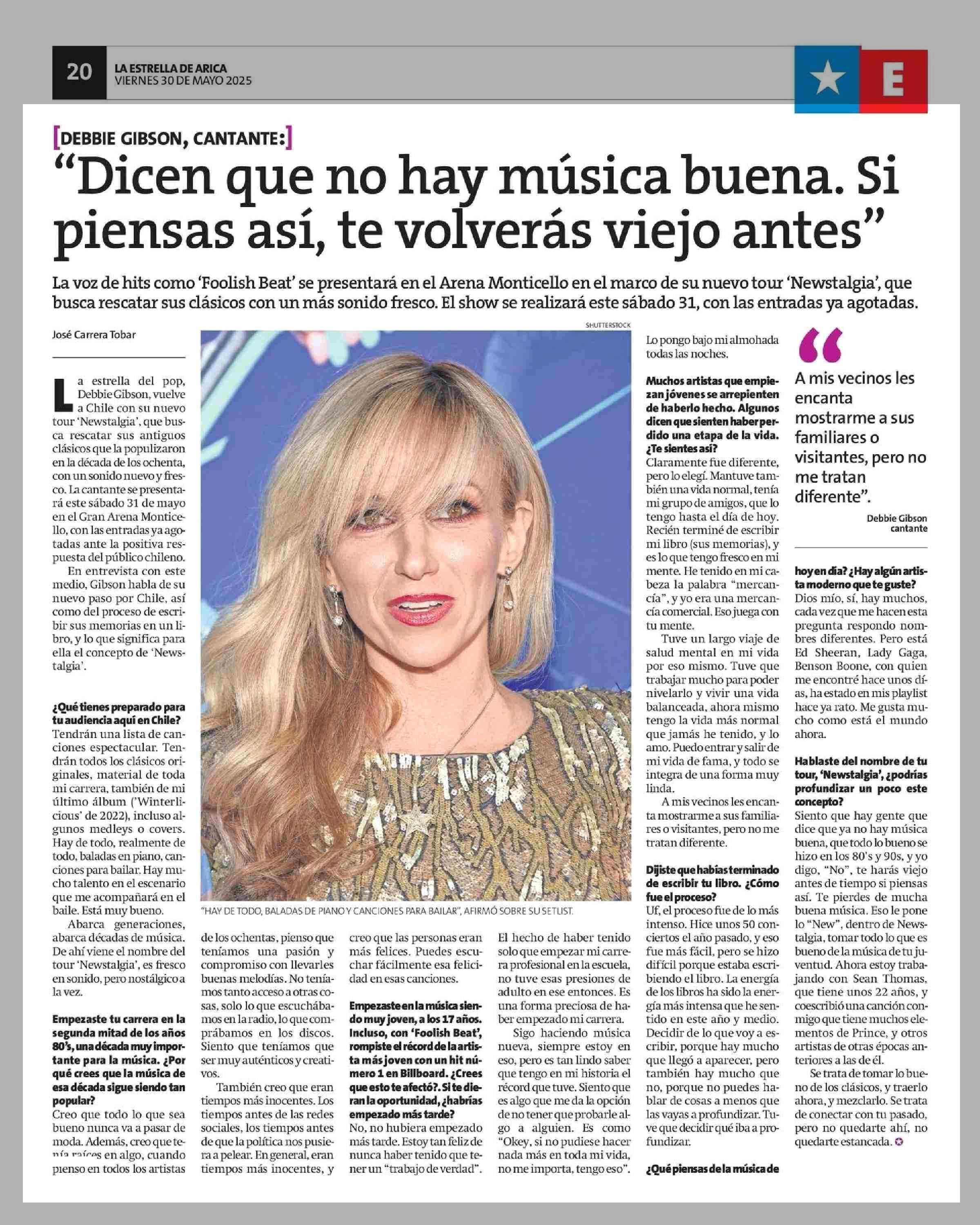 “Dicen que no hay música buena. Si piensas así, te volverás viejo antes” 30-05-2025 La Estrella de Arica |