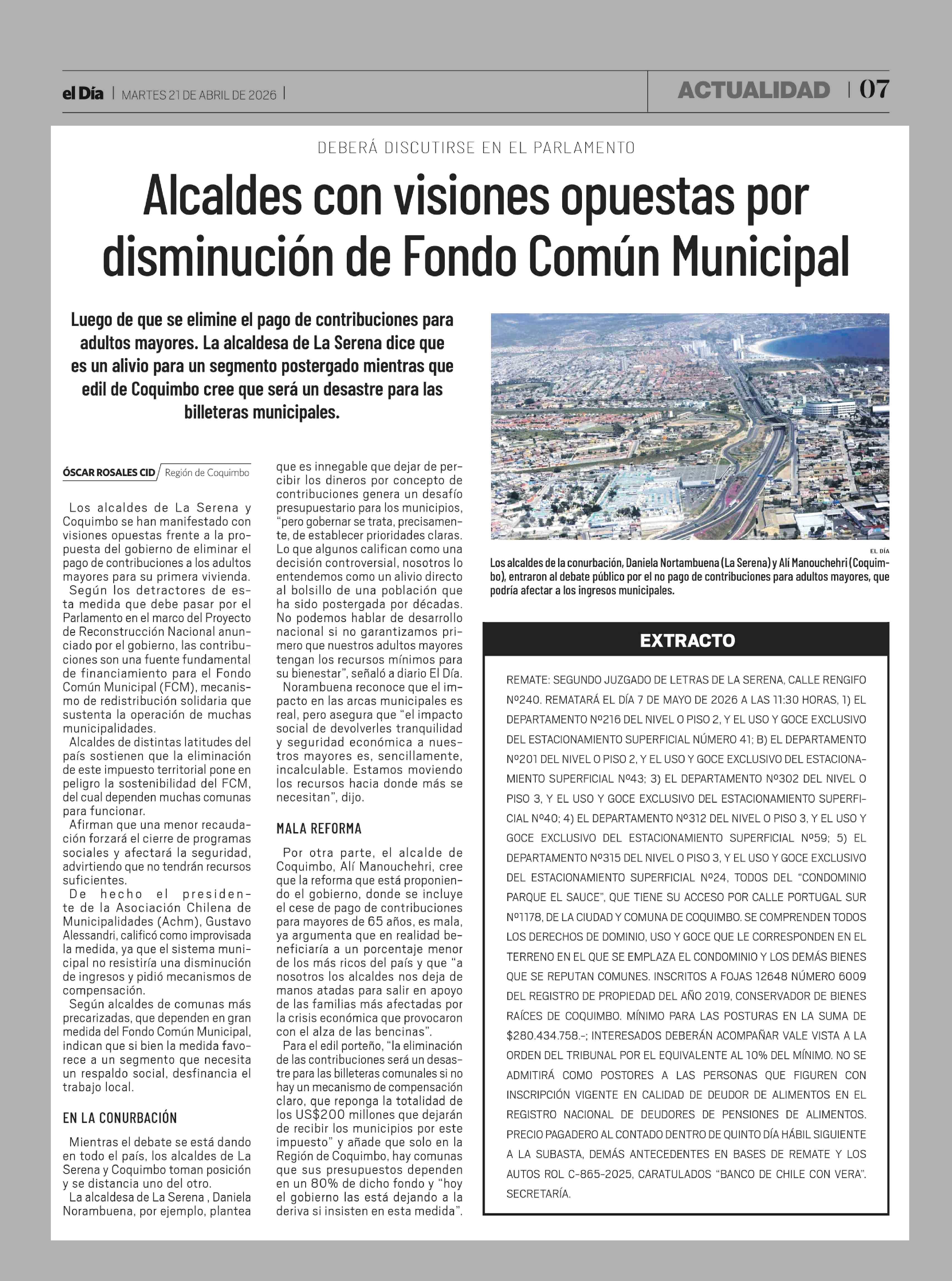 | Fecha: | 21-04-2026 | Sector: | Noticia general | Región: | Región de Coquimbo |