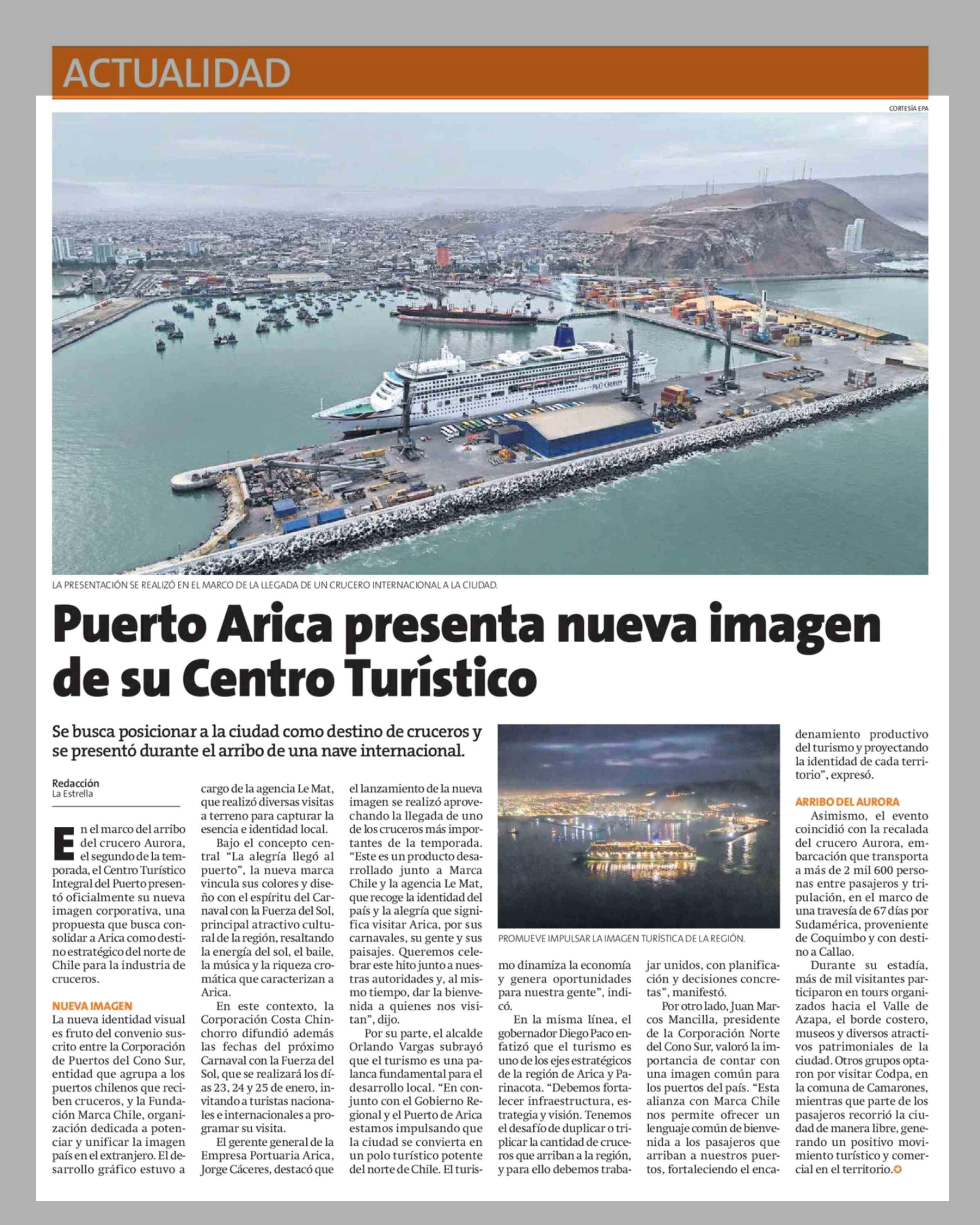 Puerto Arica presenta nueva imagen de su Centro Turístico 17-02-2026 La Estrella de Arica |
