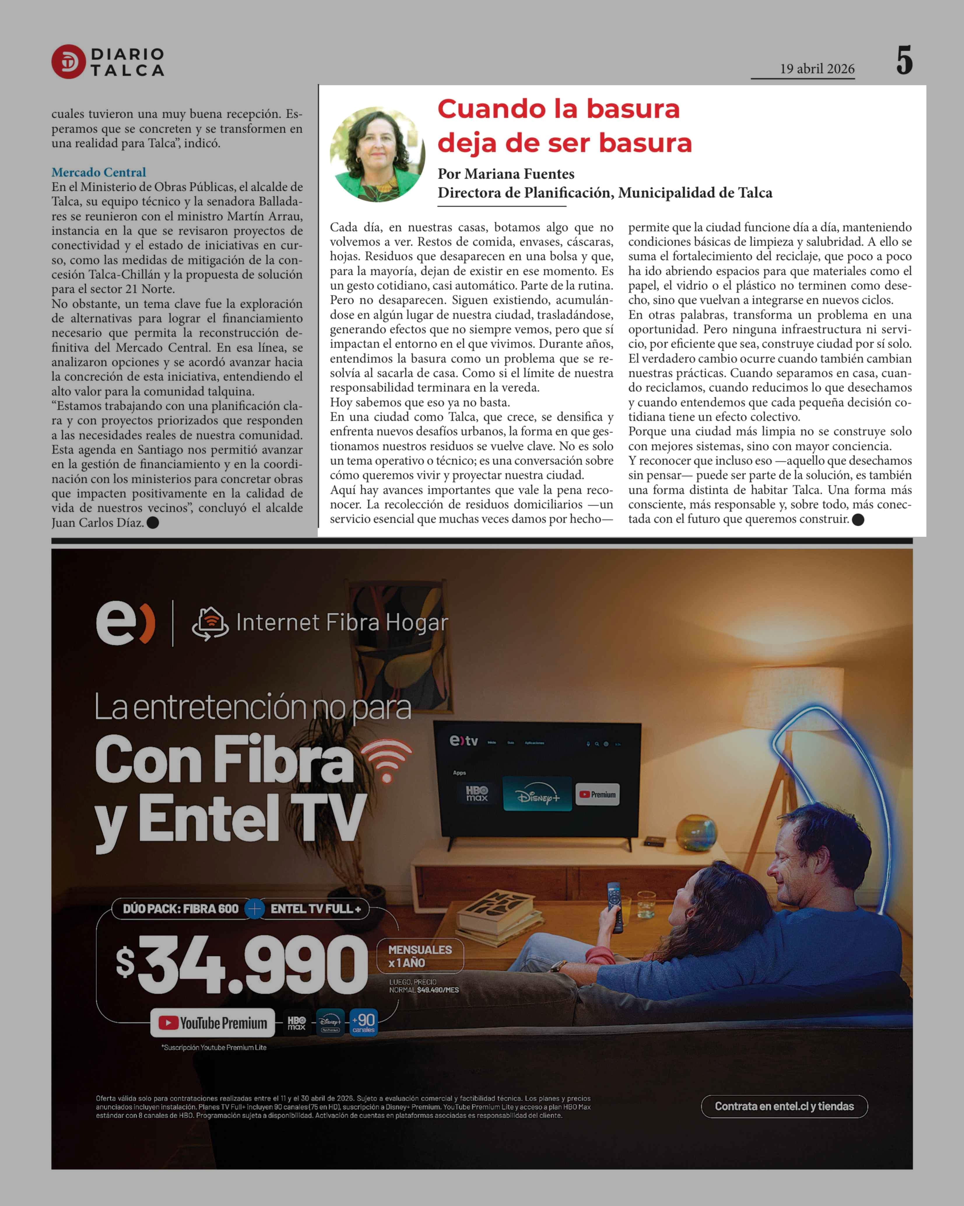 Columnas de Opinión: Cuando la basura deja de ser basura 19-04-2026 Diario Talca |