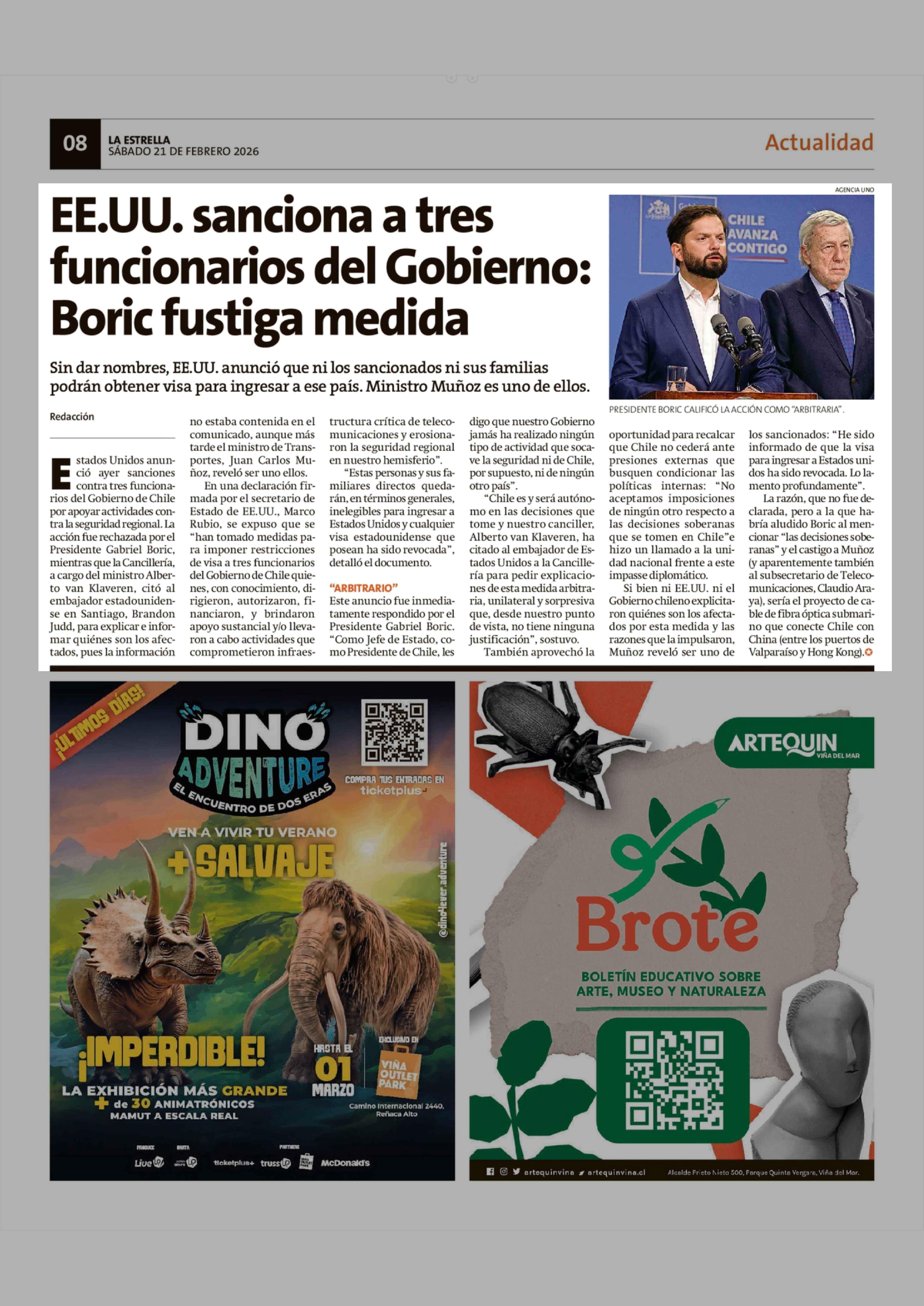 EE.UU. sanciona a tres funcionarios del Gobierno: Boric fustiga medida 21-02-2026 La Estrella de Valparaíso |