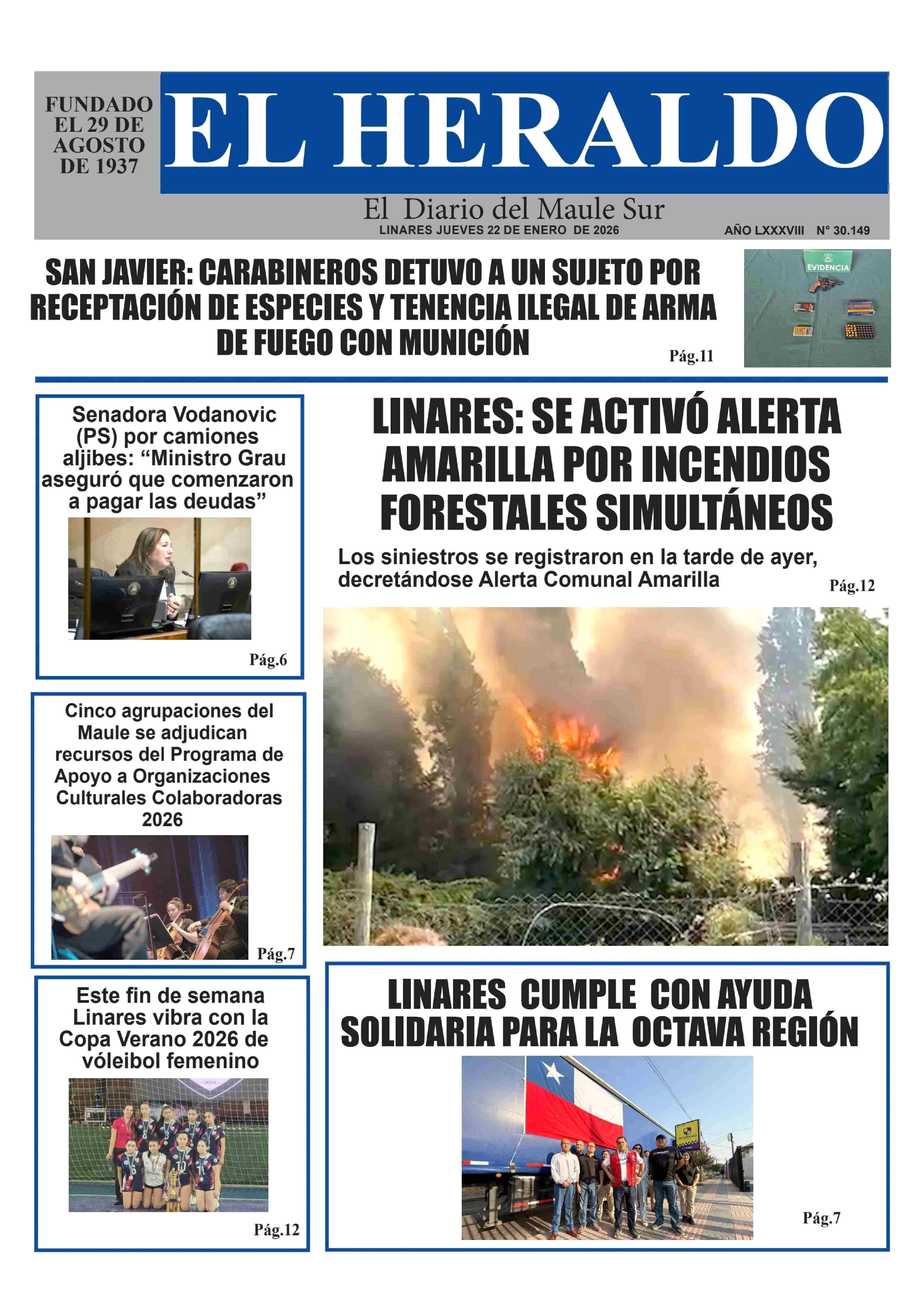 PORTADA EL HERALDO DE LINARES CHILE 22-01-2026 El Heraldo |