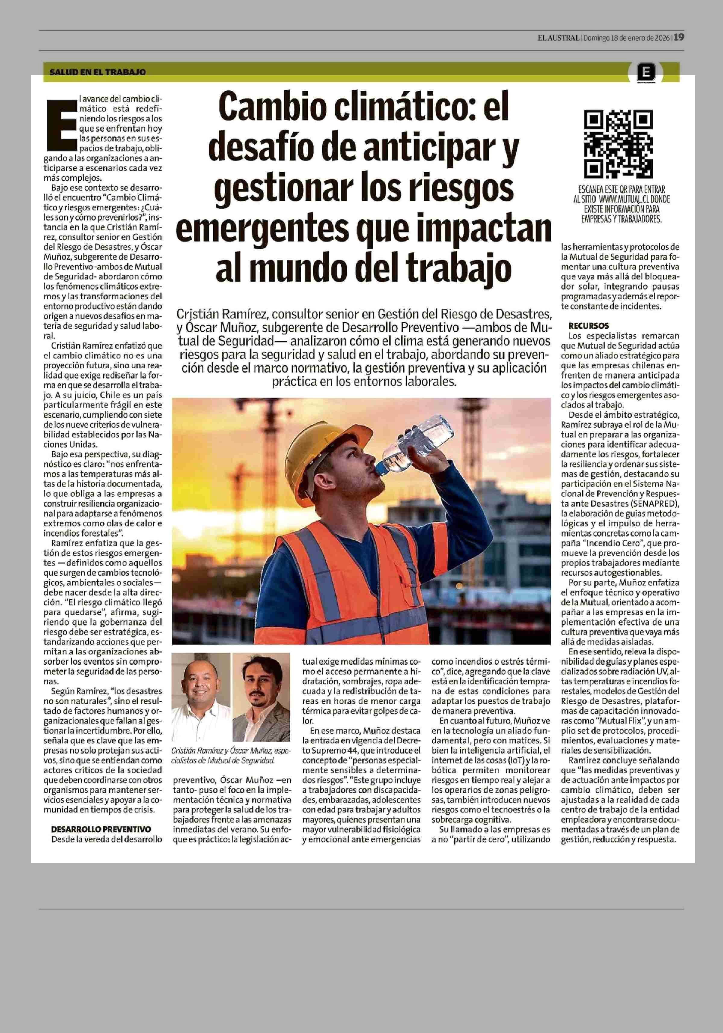 Cambio climático: el desafío de anticipar y gestionar los riesgos emergentes que impactan al mundo del trabajo 18-01-2026 El Austral de la Araucanía |