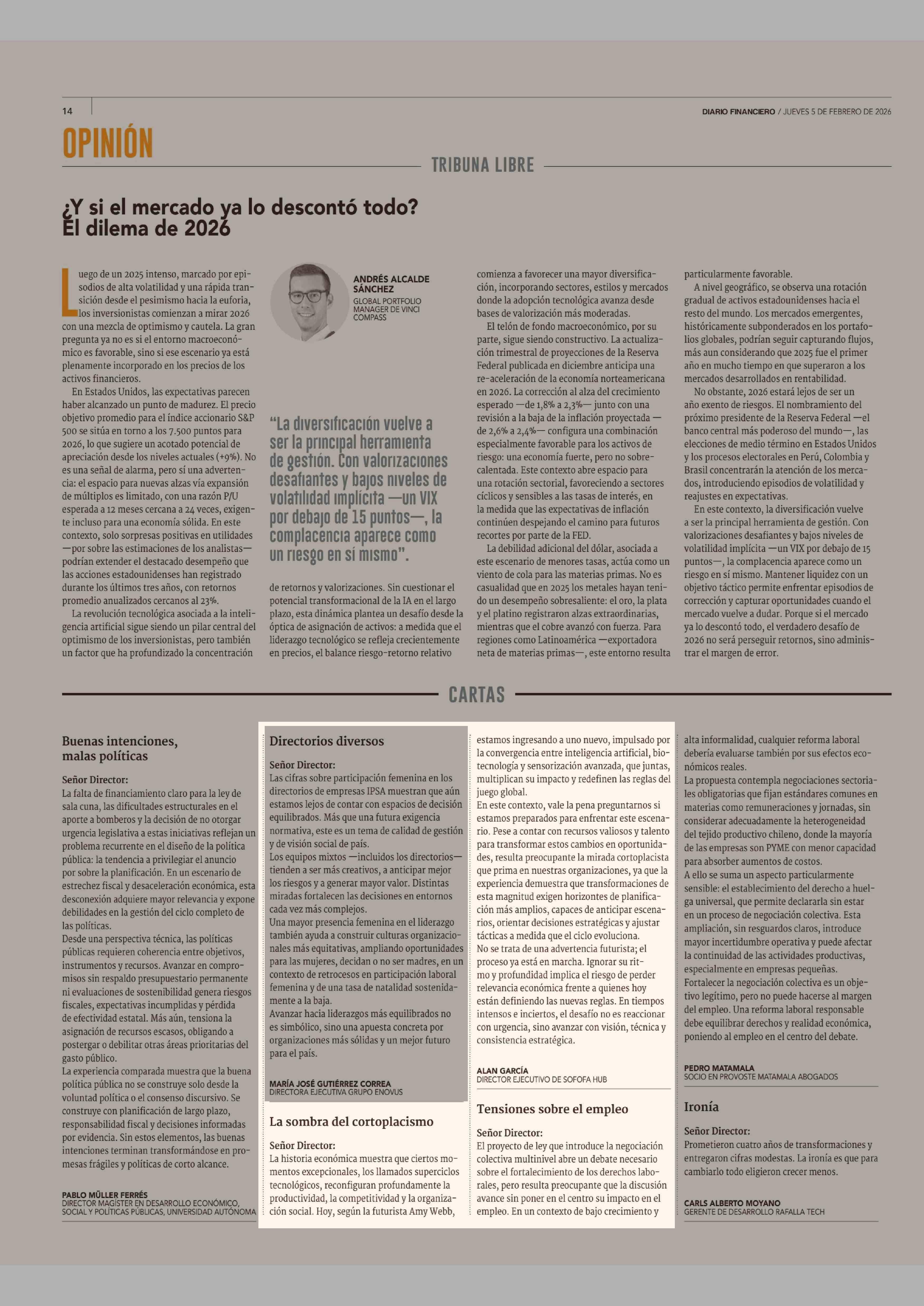 CARTAS: La sombra del cortoplacismo 05-02-2026 Diario Financiero |
