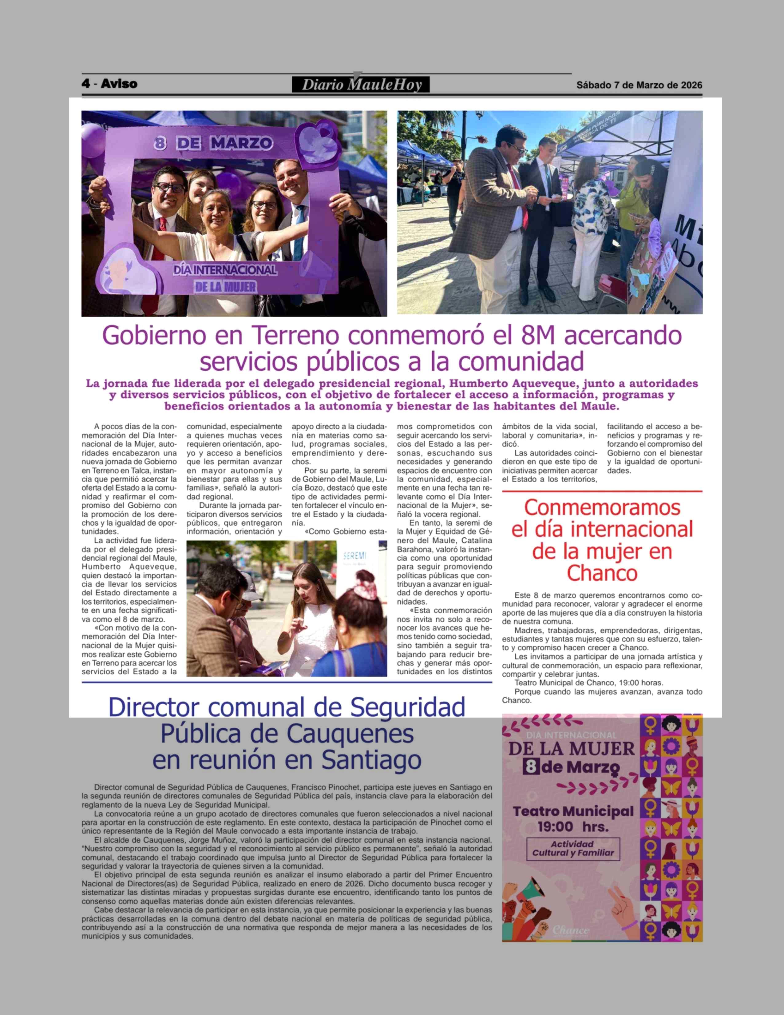 Fecha: 07-03-2026 Sector: Noticia general Región: Región del Maule