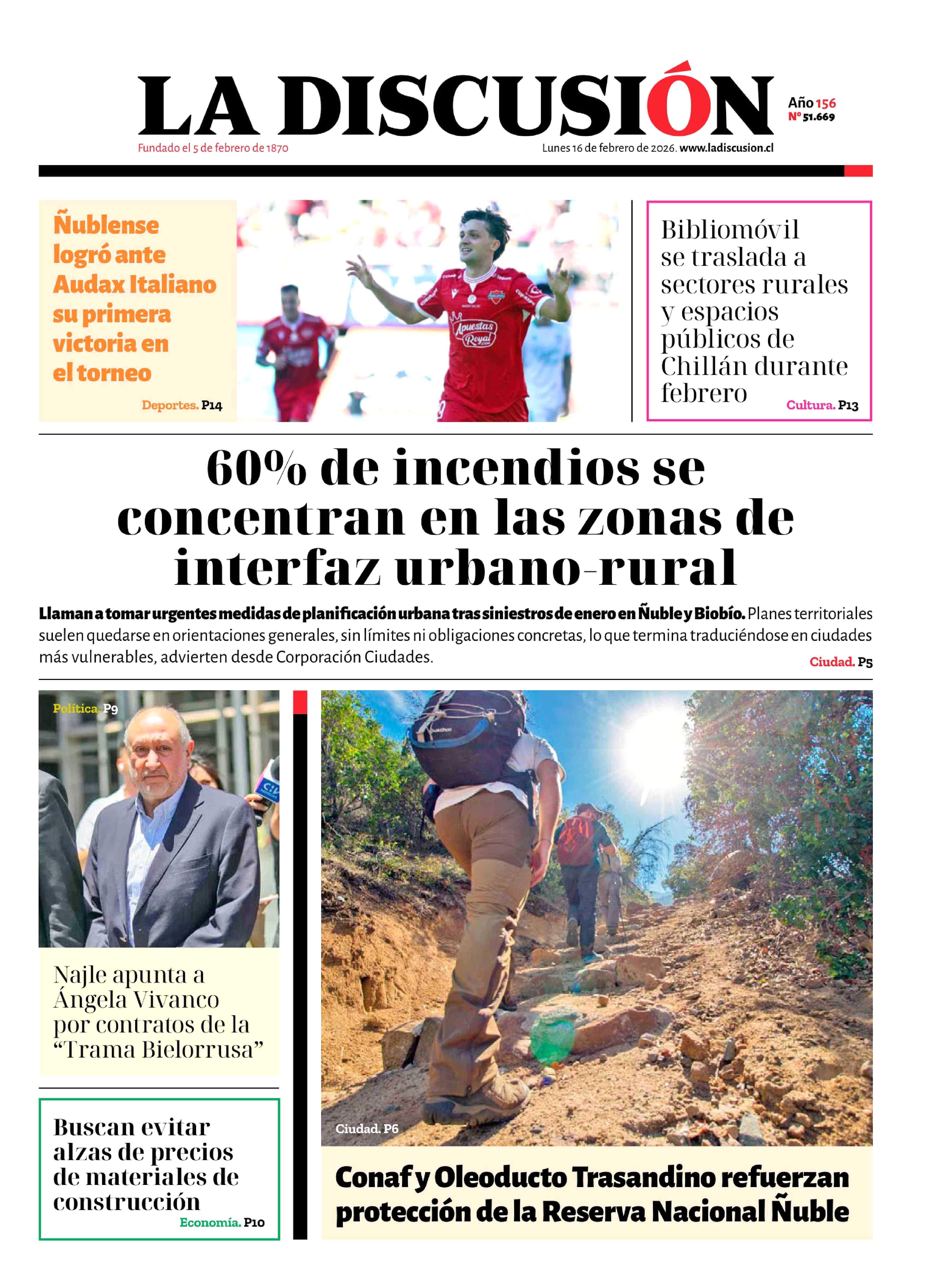 Fecha: 16-02-2026 Sector: Portada Región: Región del Ñuble