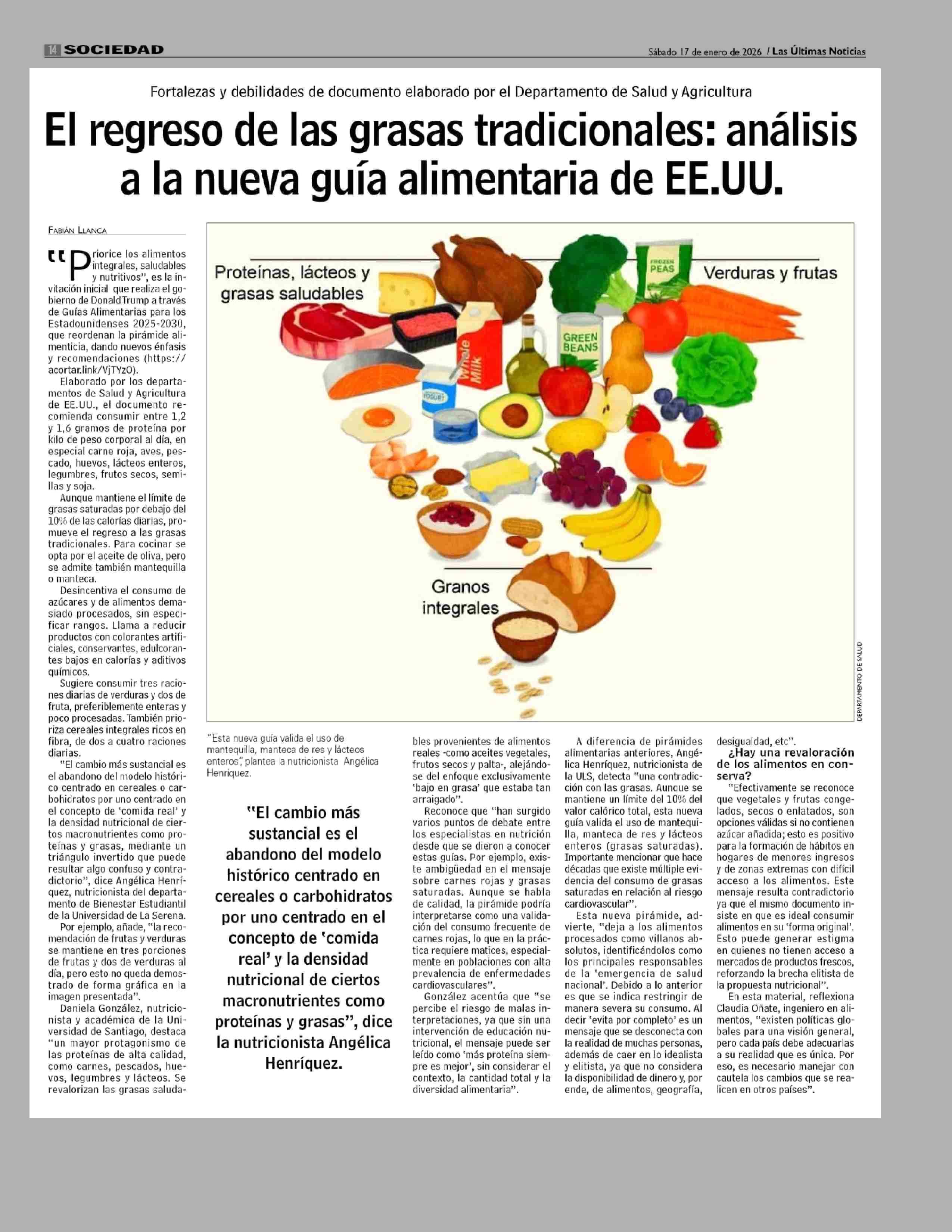 Título: El regreso de las grasas tradicionales: análisis a la nueva guía alimentaria de EE.UU.