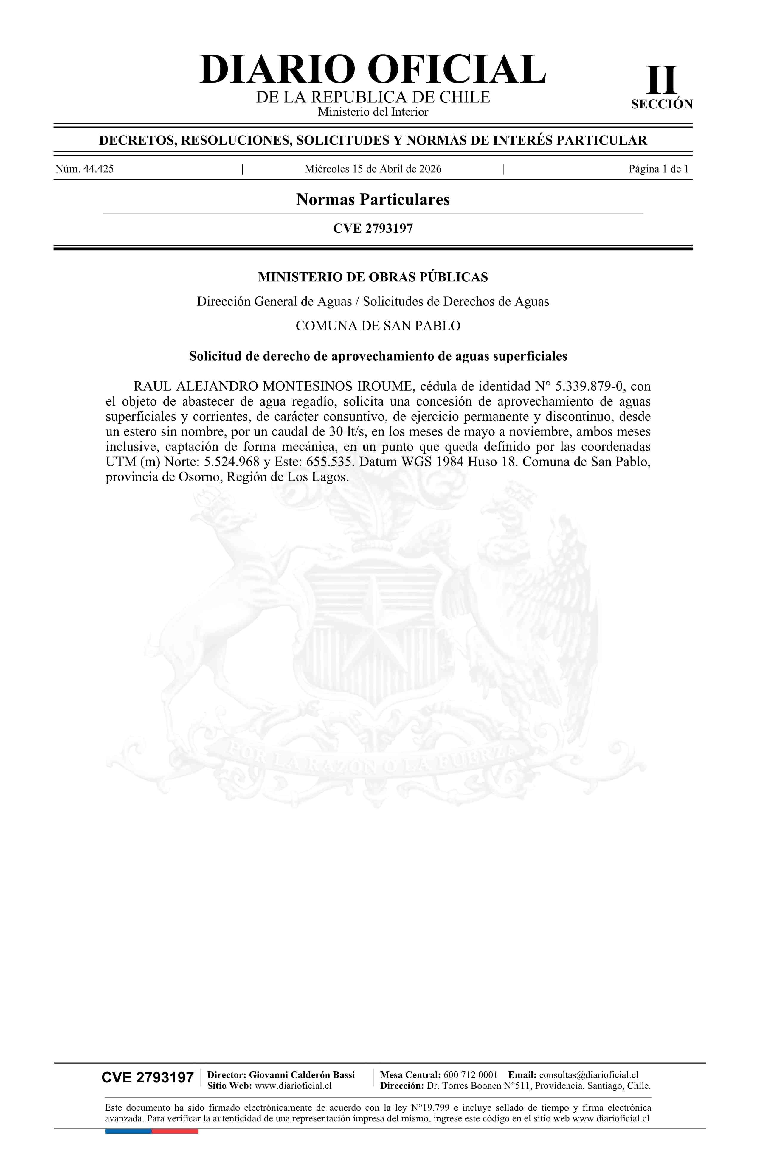Fuente: Diario Oficial Edición Electrónica (Diario Oficial de Chile - 2 Normas Particulares) Página(s): 346