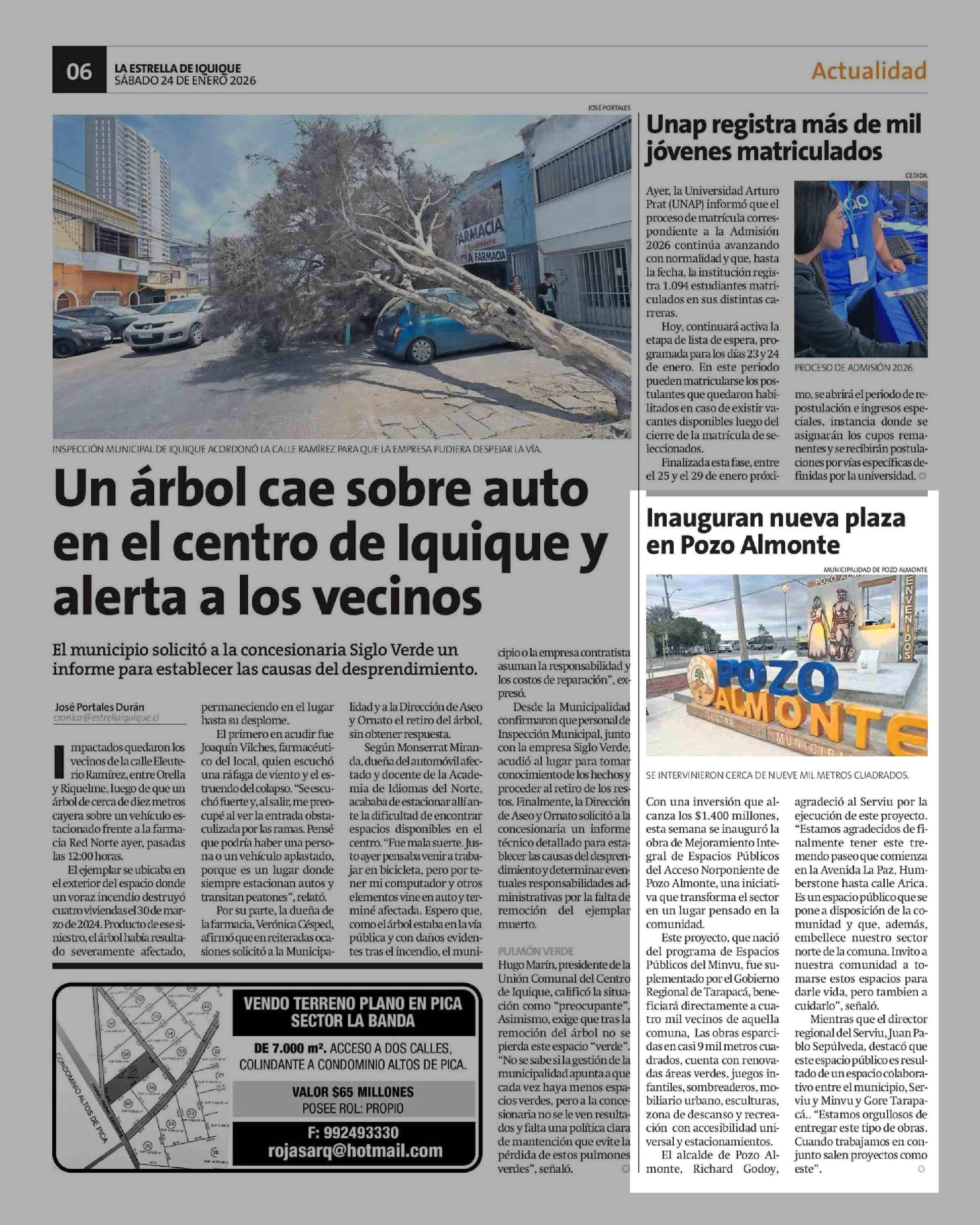 | Fecha: | 24-01-2026 | Sector: | Noticia general | Región: | Región de Tarapacá |
