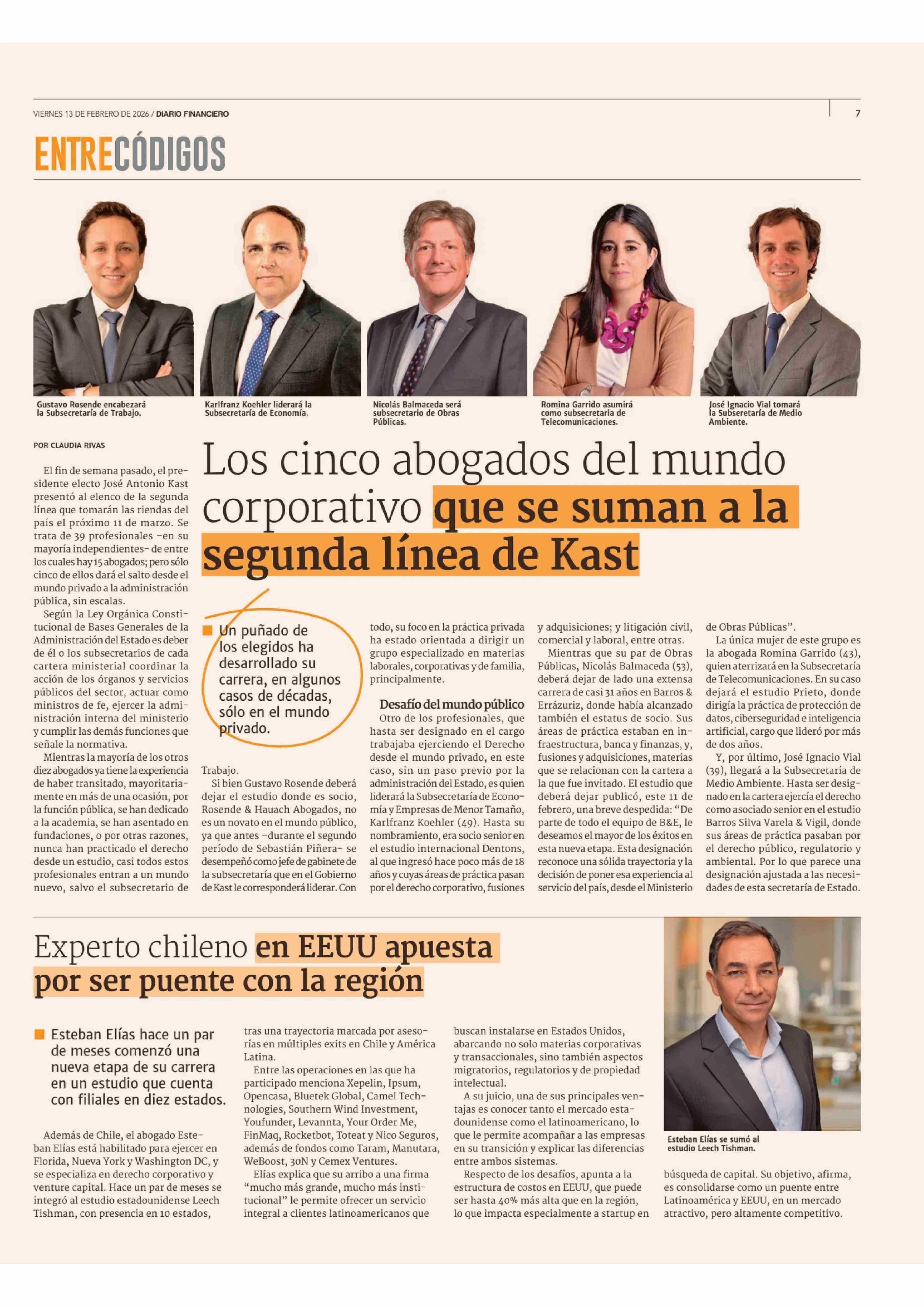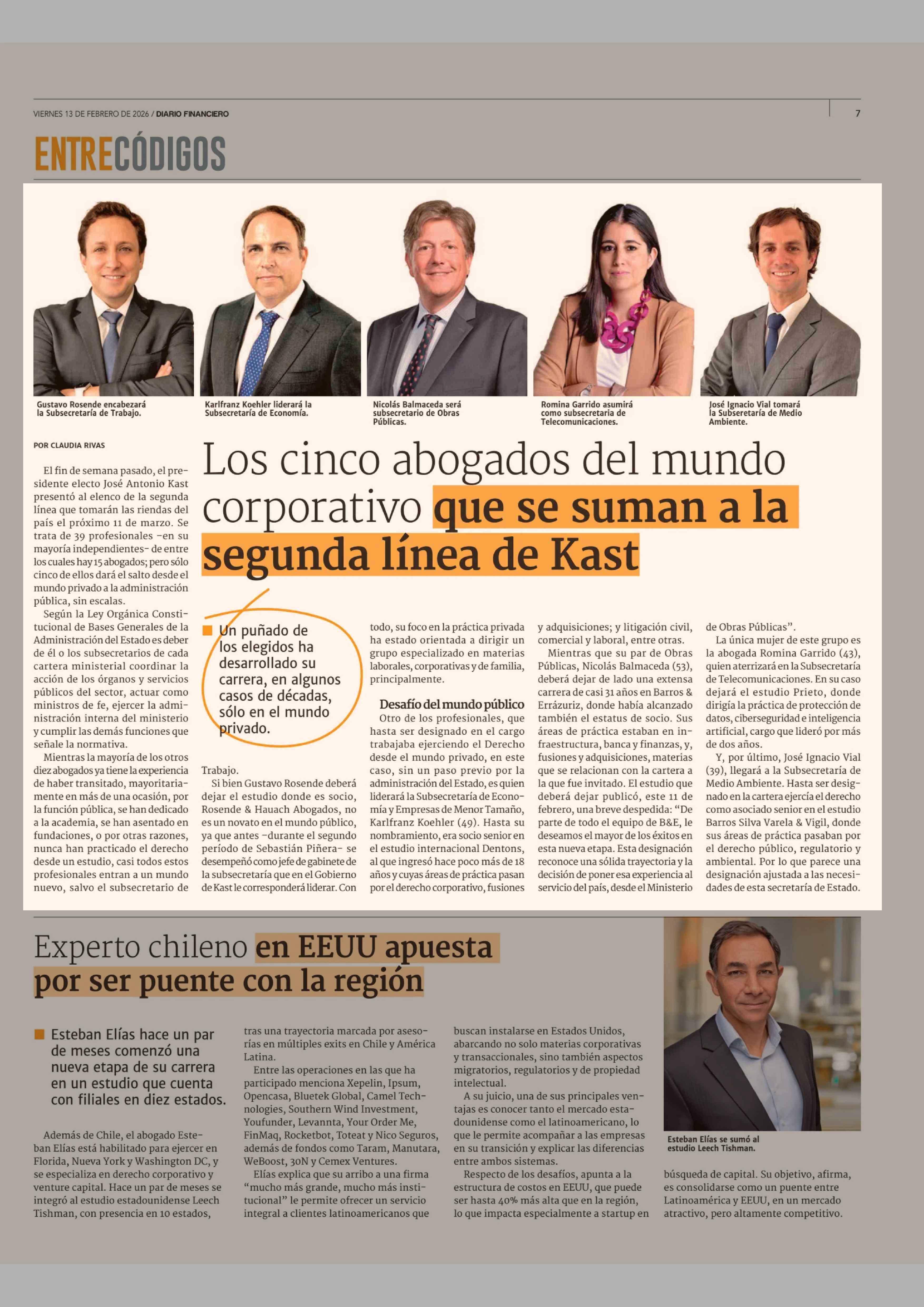 Título: Los cinco abogados del mundo corporativo que se suman a la segunda línea de Kast