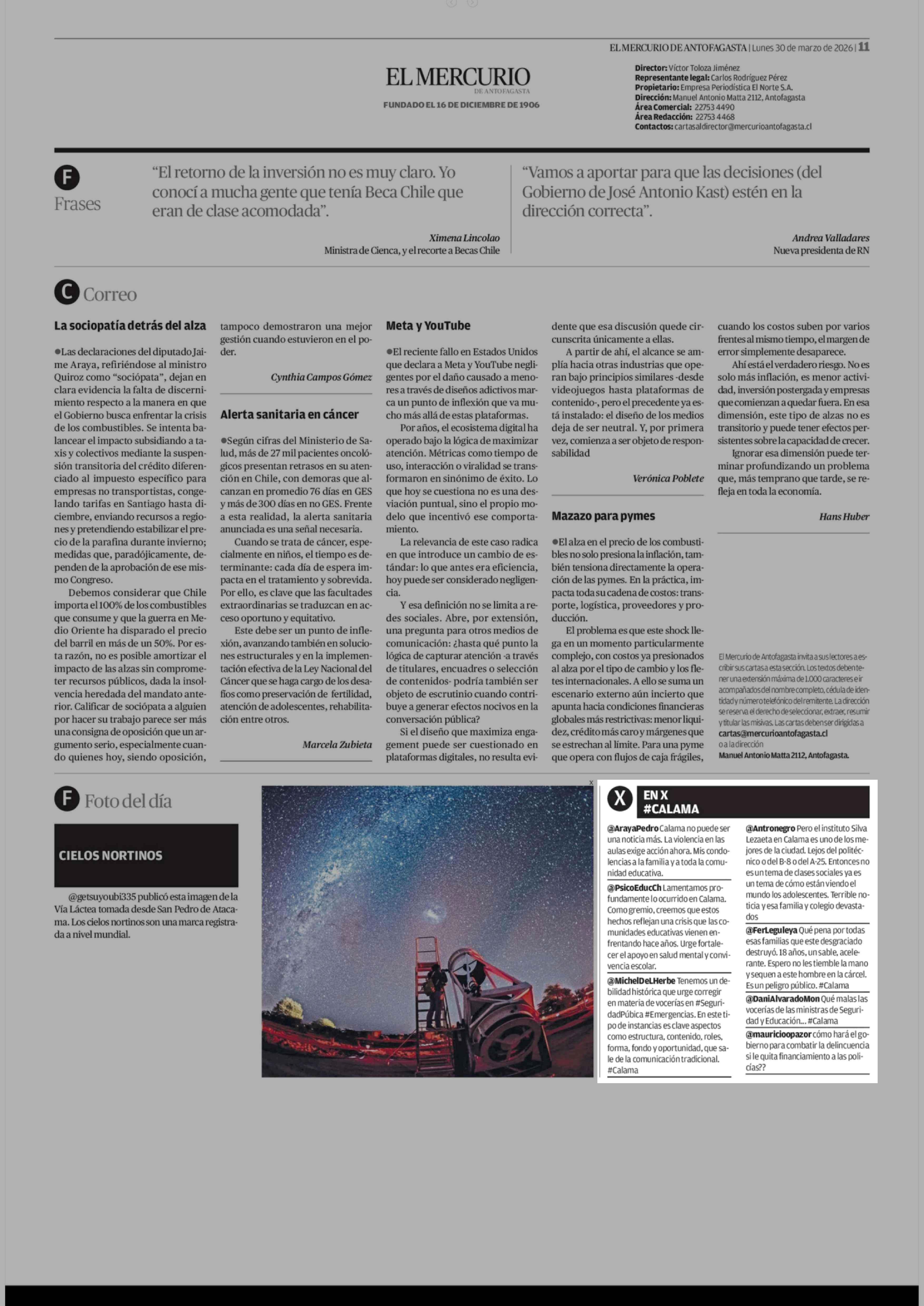 Fecha: 30-03-2026 Sector: Noticia general Región: Región de Antofagasta