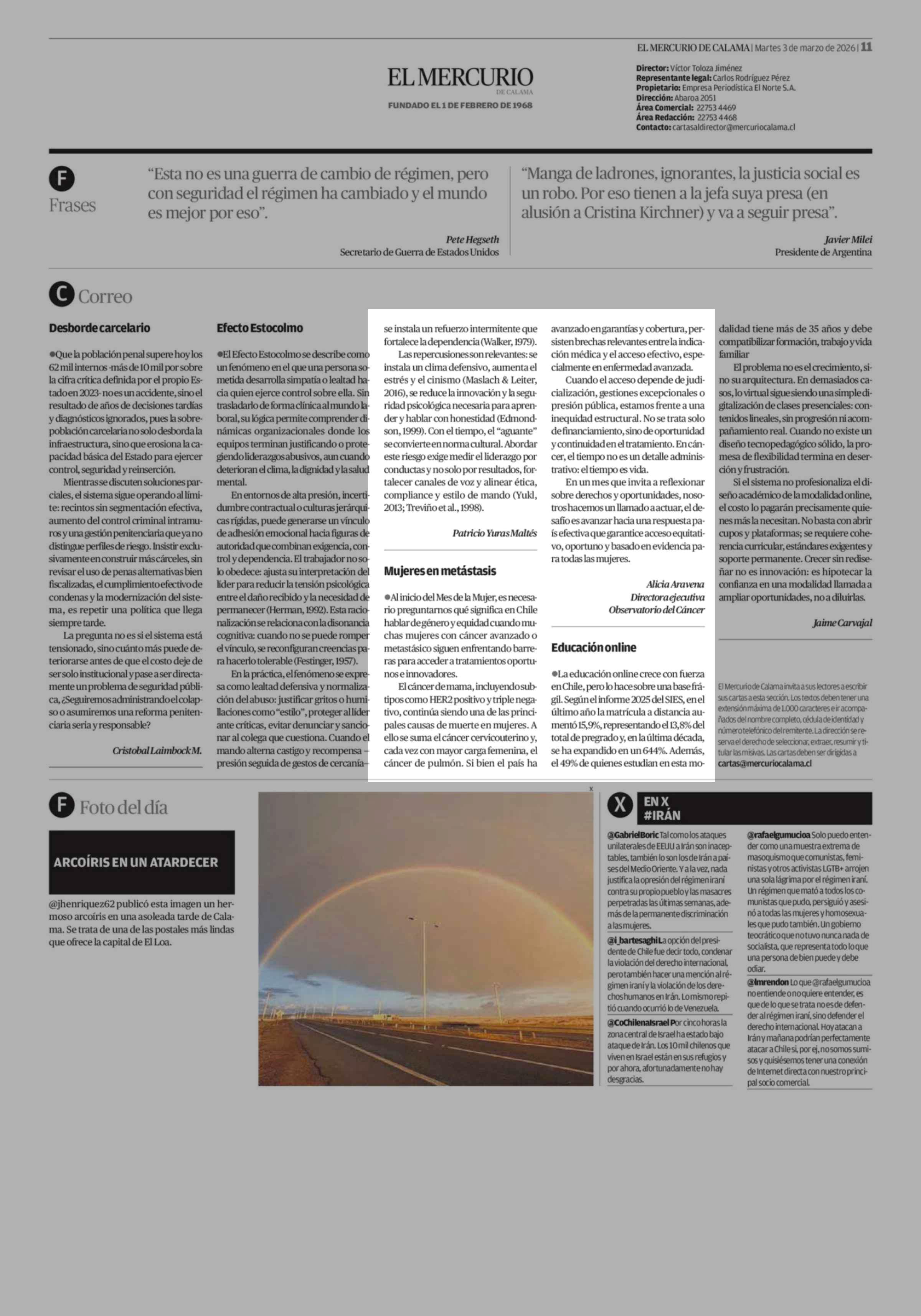 Fecha: 03-03-2026 Sector: Cartas Región: Región de Antofagasta
