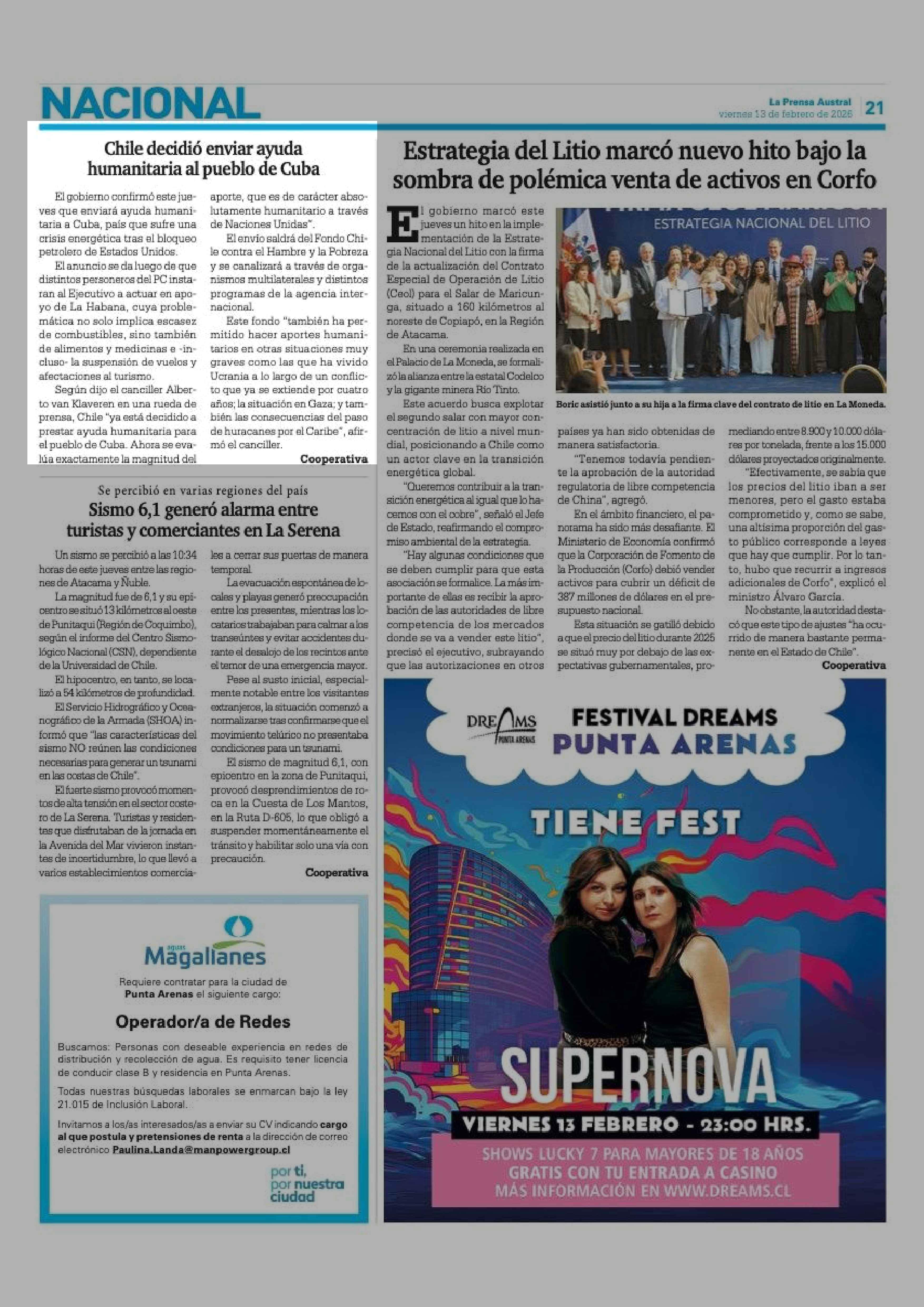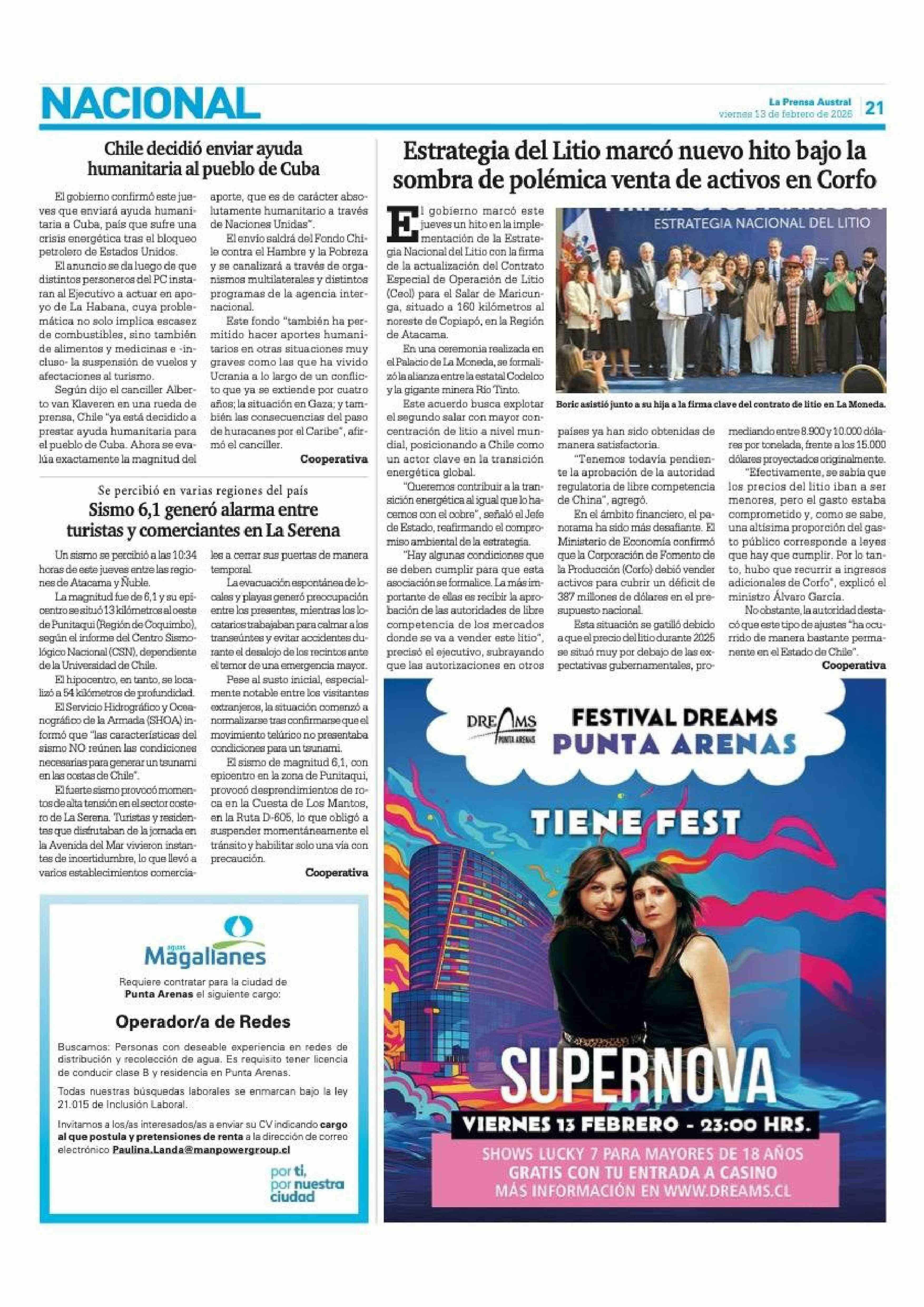 Fecha: 13-02-2026 Sector: Noticia general Región: Región de Magallanes y de la Antártica Chilena