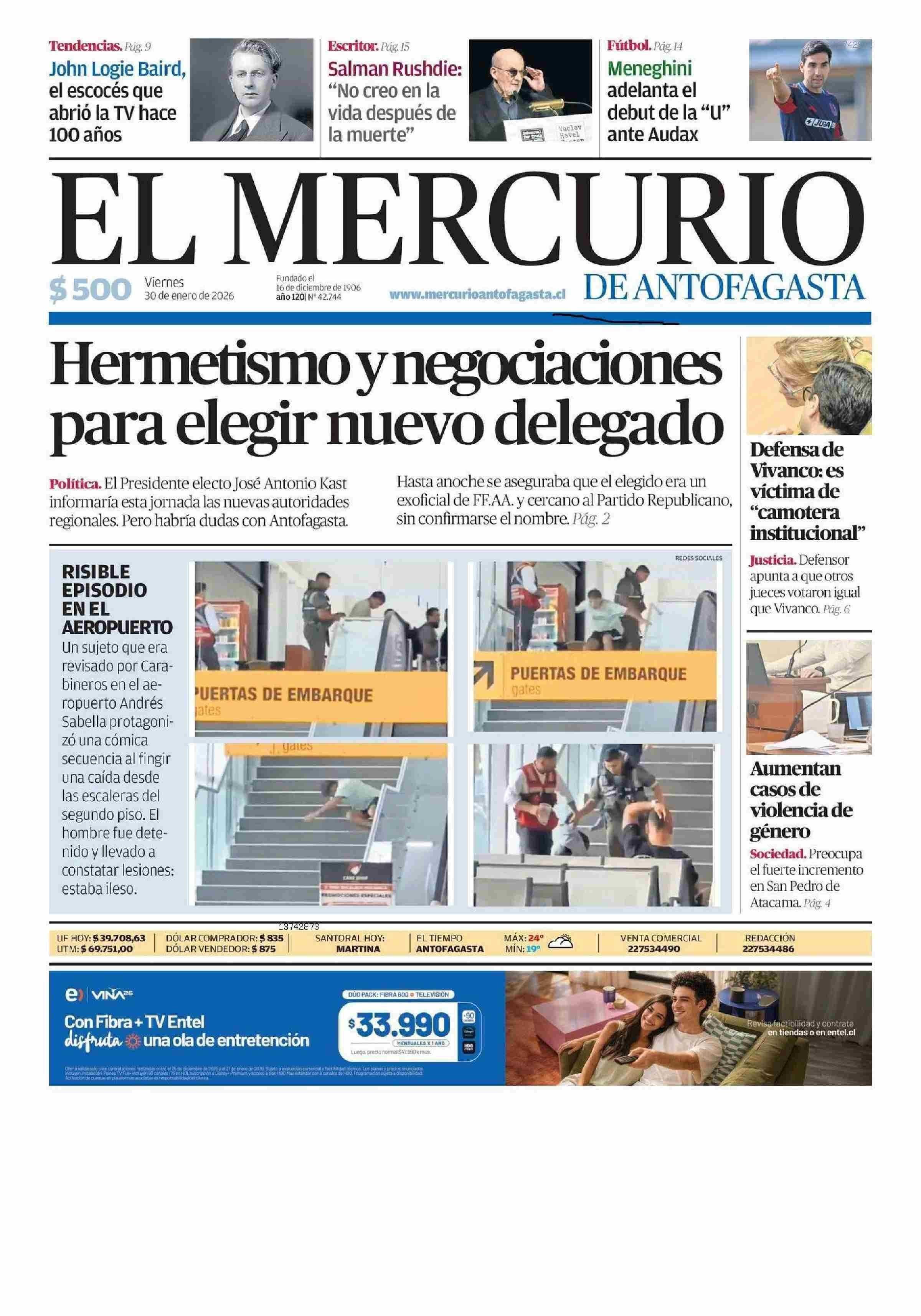 | Fecha: | 30-01-2026 | Sector: | Portada | Región: | Región de Antofagasta |