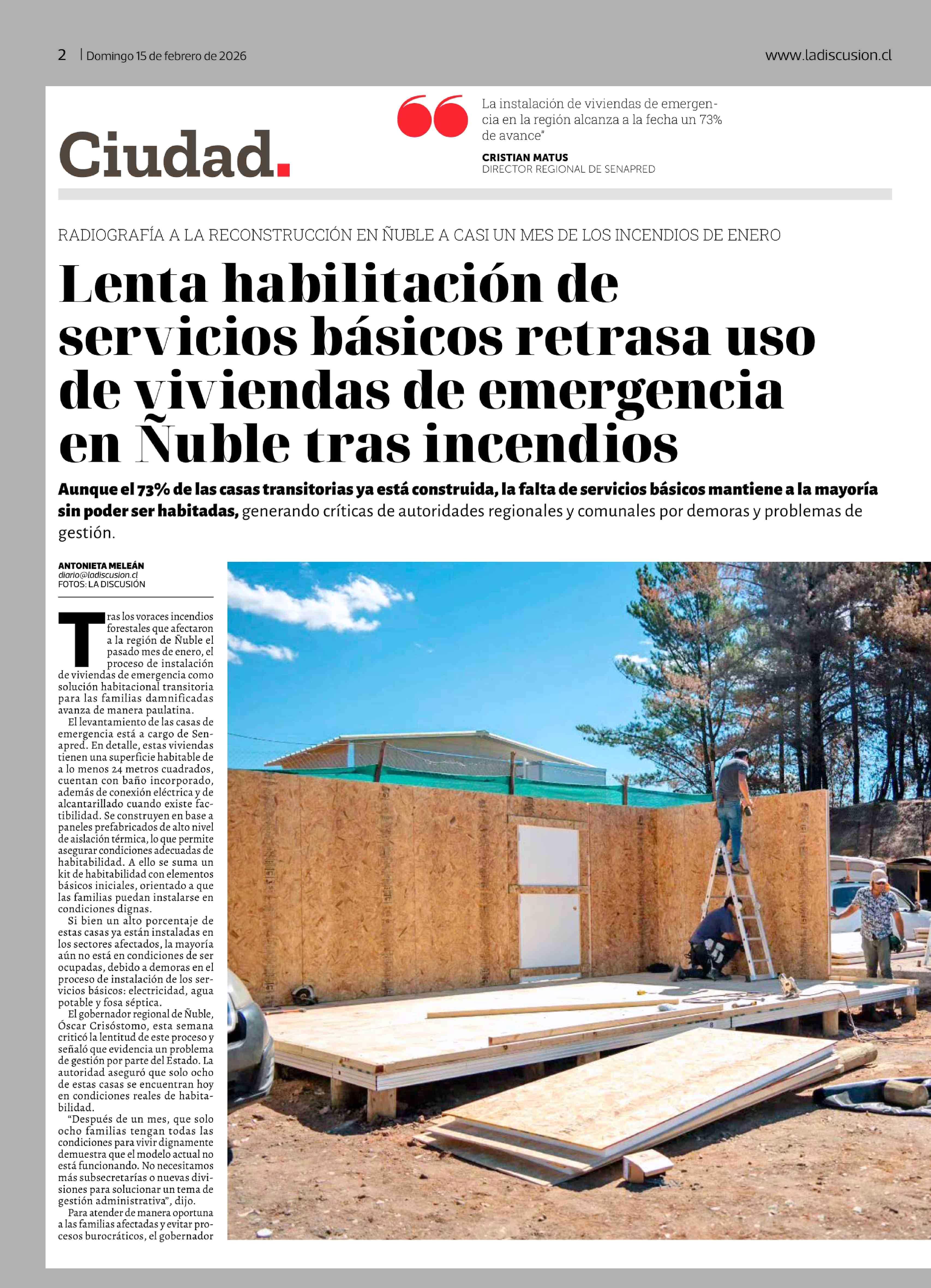 Título: Lenta habilitación de servicios básicos retrasa uso de viviendas de emergencia en Ñuble tras incendios