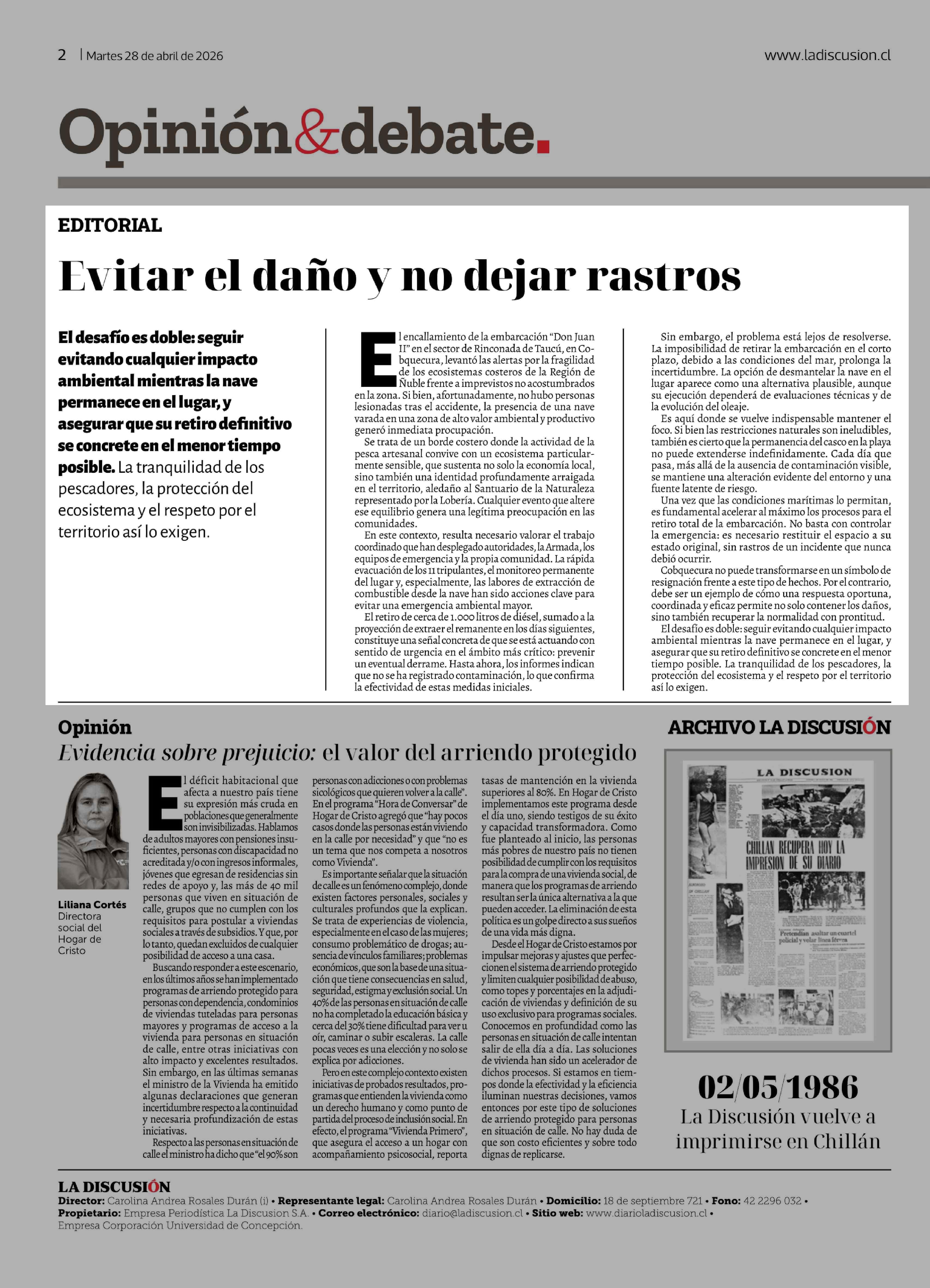 Editorial: Evitar el daño y no dejar rastros 28-04-2026 La Discusión |