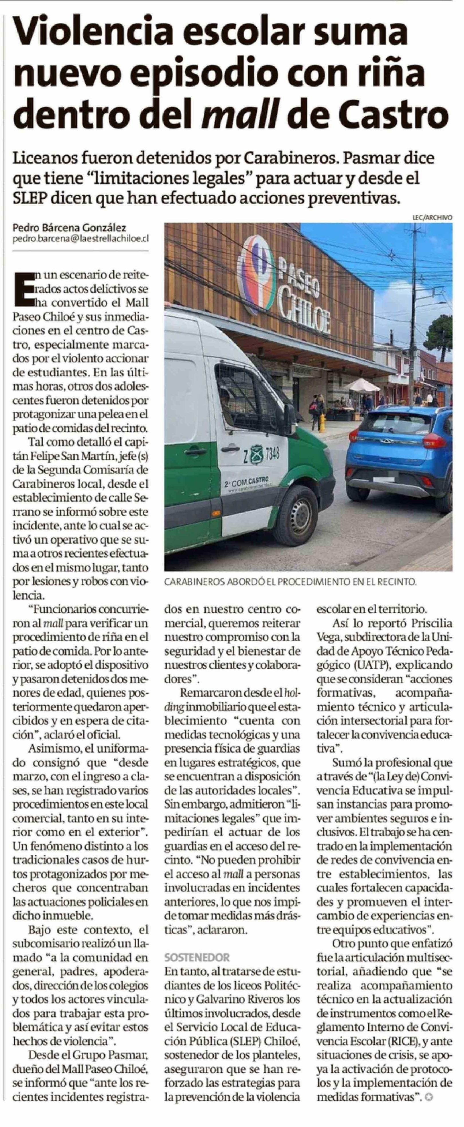 Violencia escolar suma nuevo episodio con riña dentro del mall de Castro 26-03-2026 La Estrella de Chiloé |