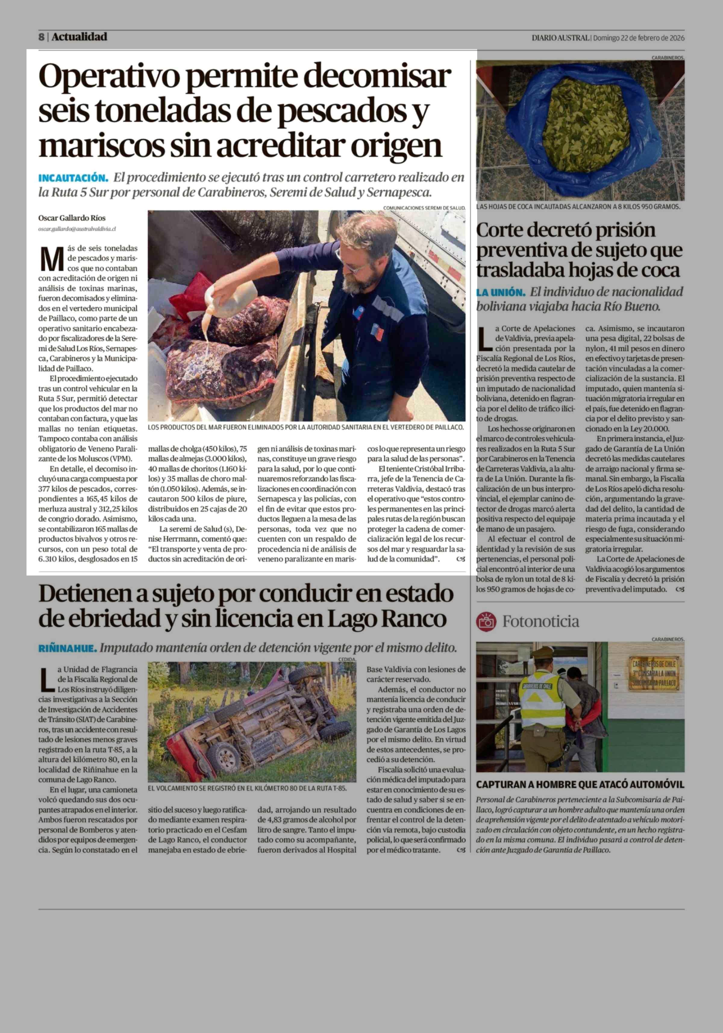 Fecha: 22-02-2026 Sector: Noticia general Región: Región de Los Ríos