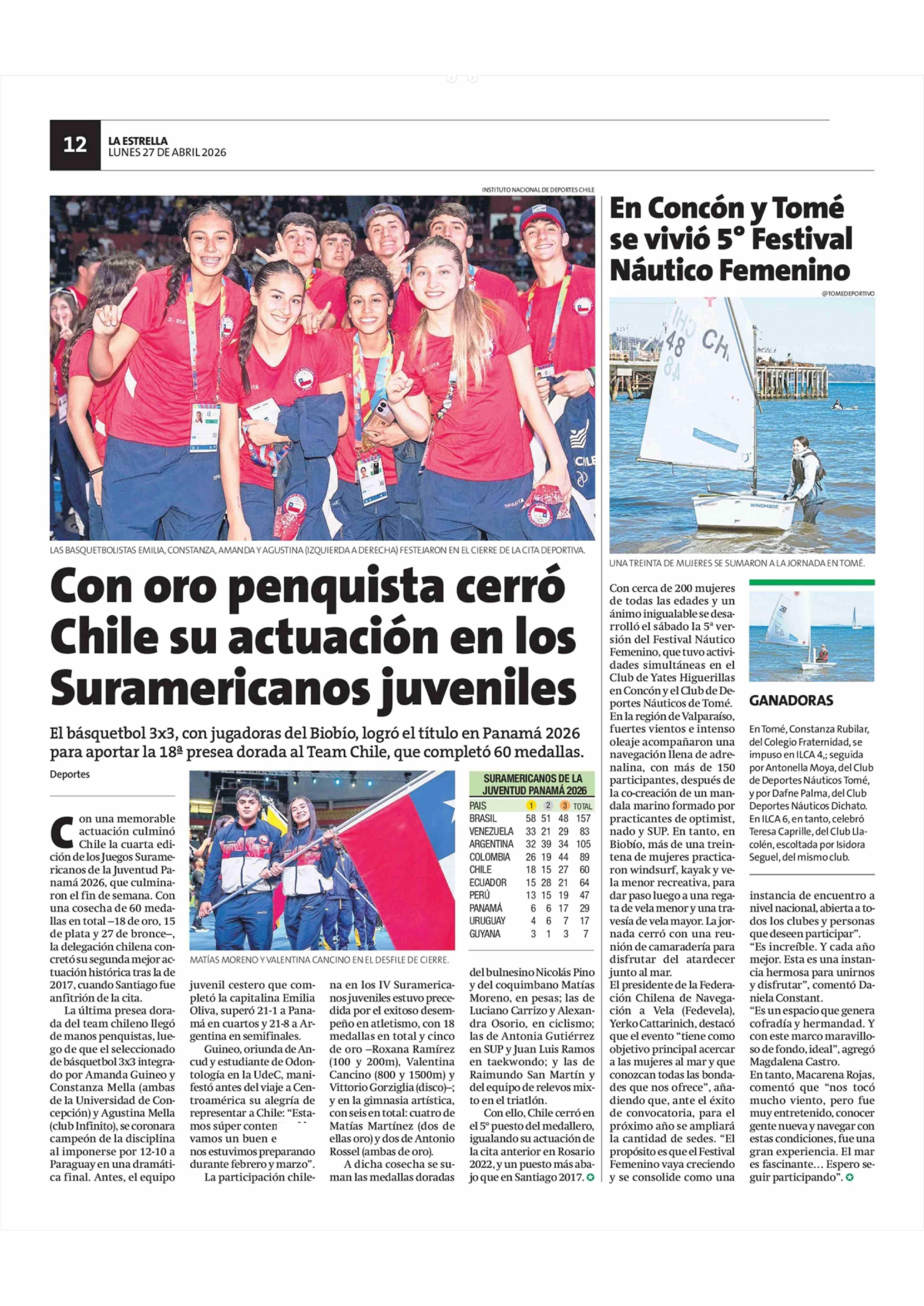 Título: Con oro penquista cerró Chile su actuación en los Suramericanos juveniles