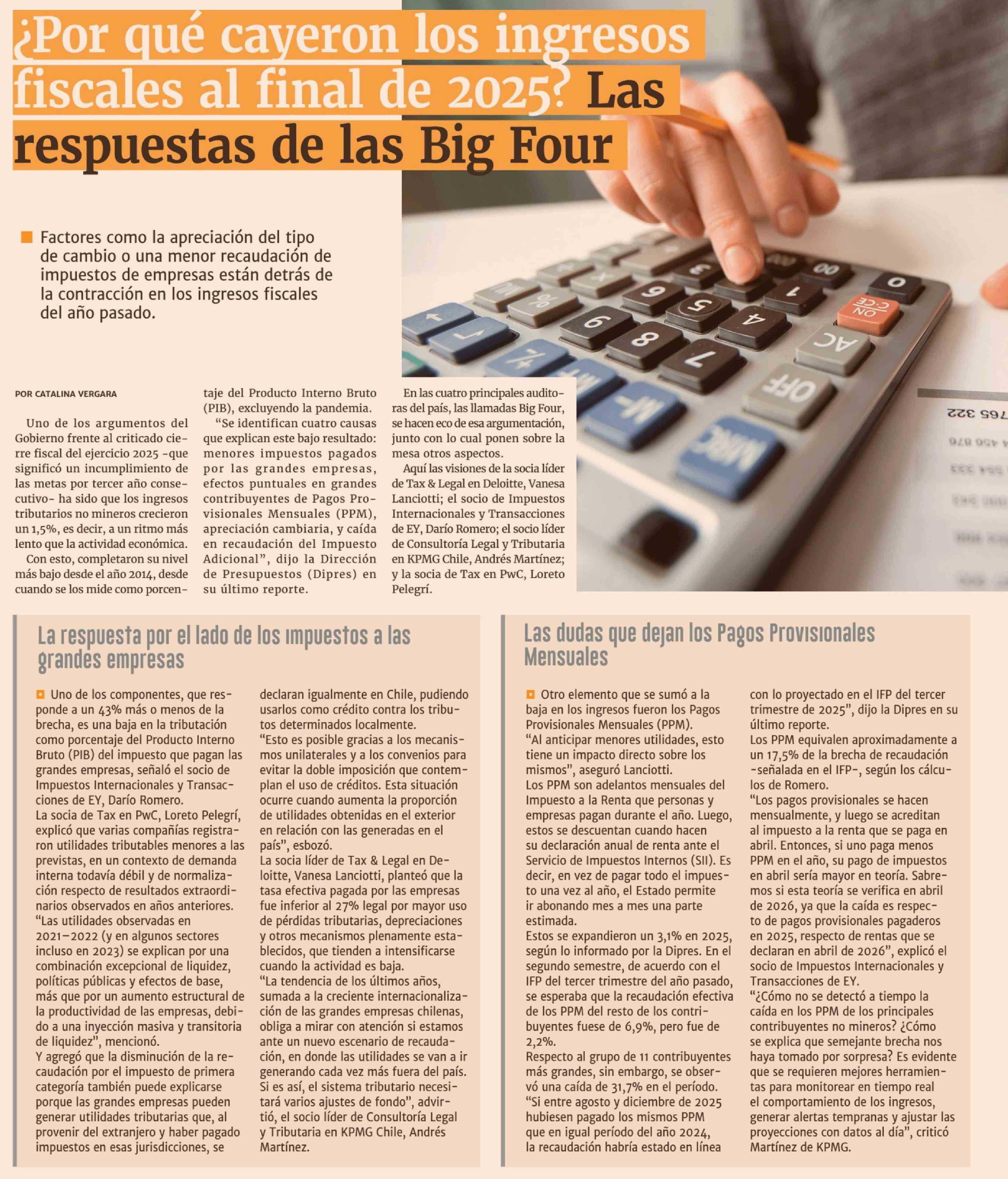 Título: ¿Por qué cayeron los ingresos fiscales al final de 2025. Las respuestas de las Big Four
