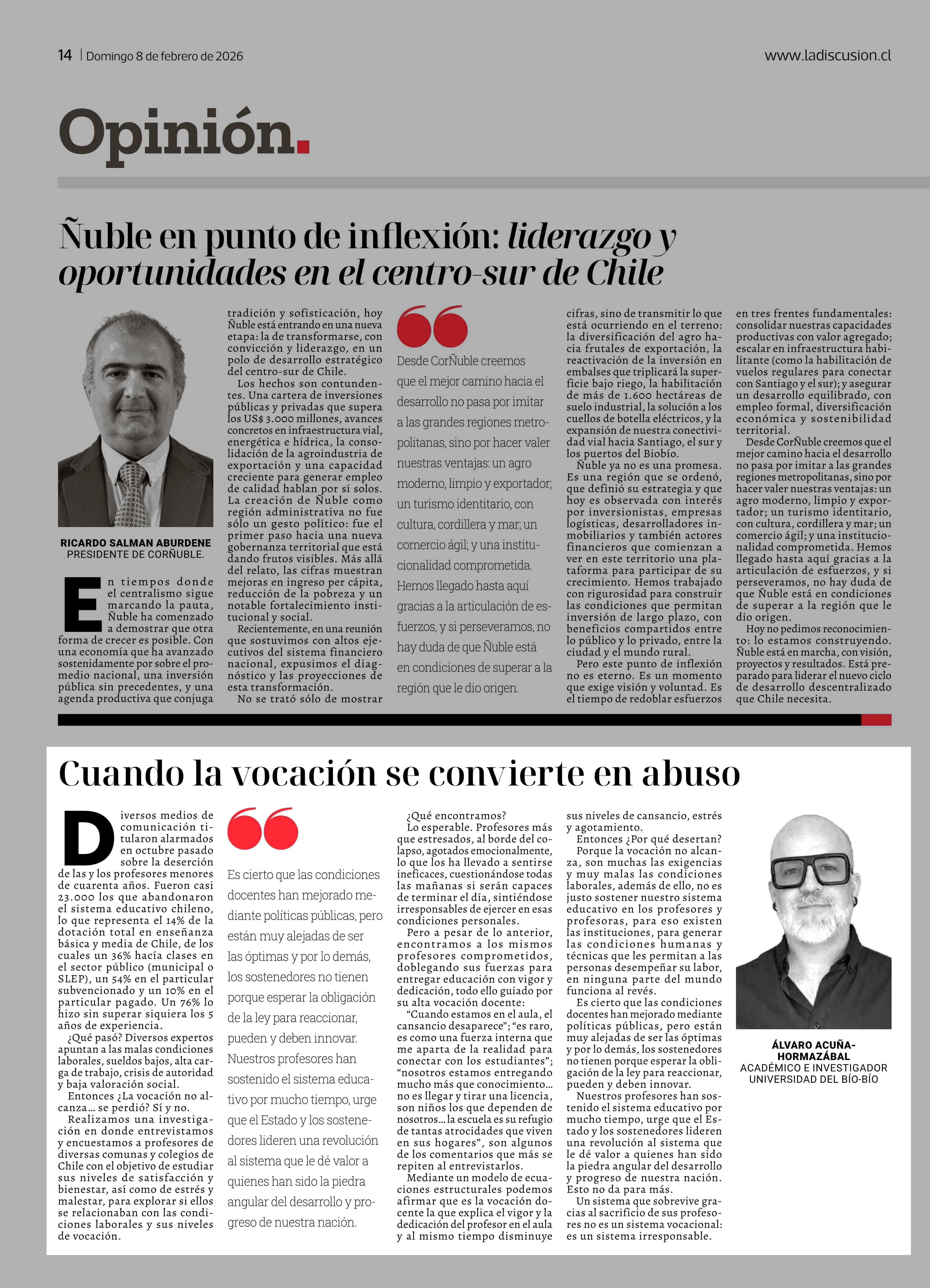 Fecha: 08-02-2026 Sector: Columnas de Opinión Región: Región del Ñuble