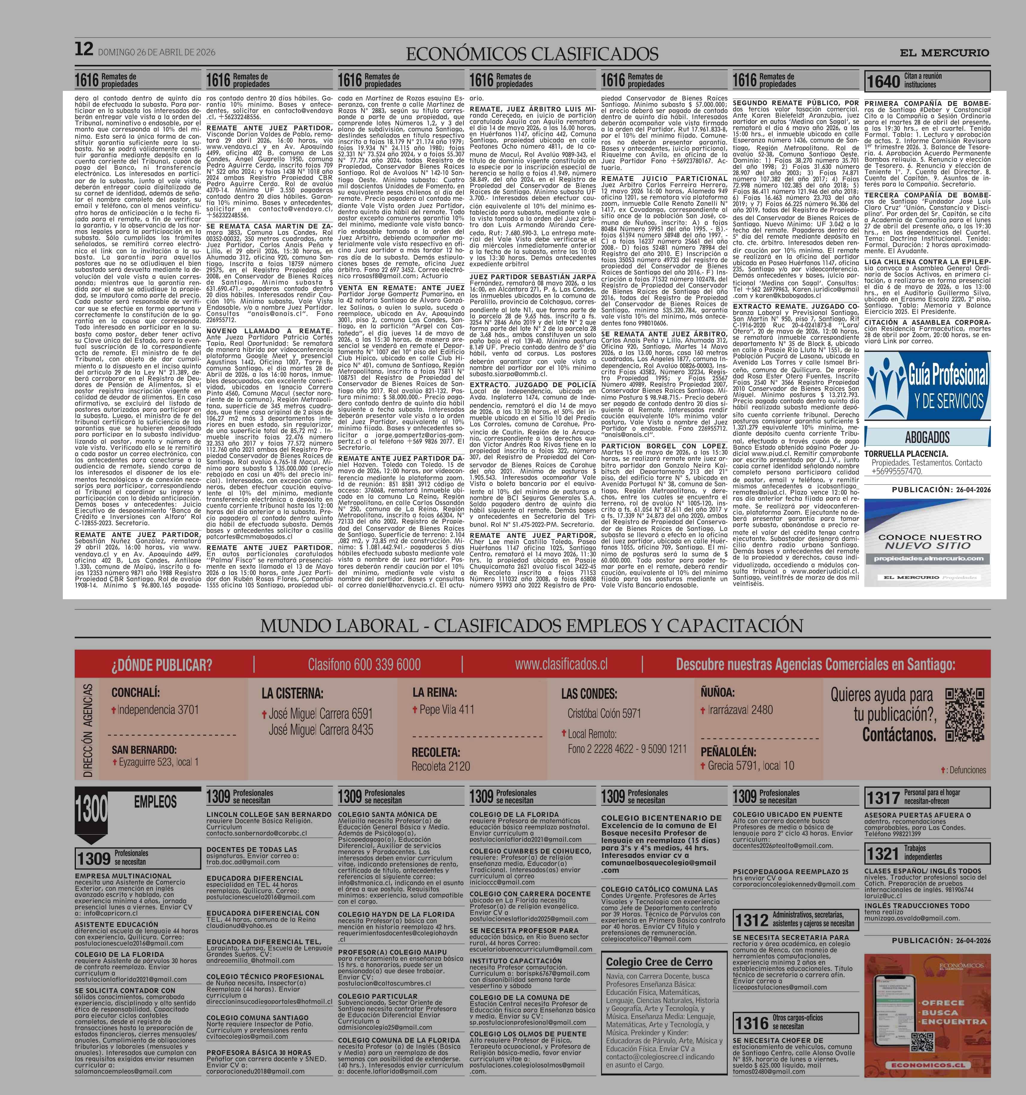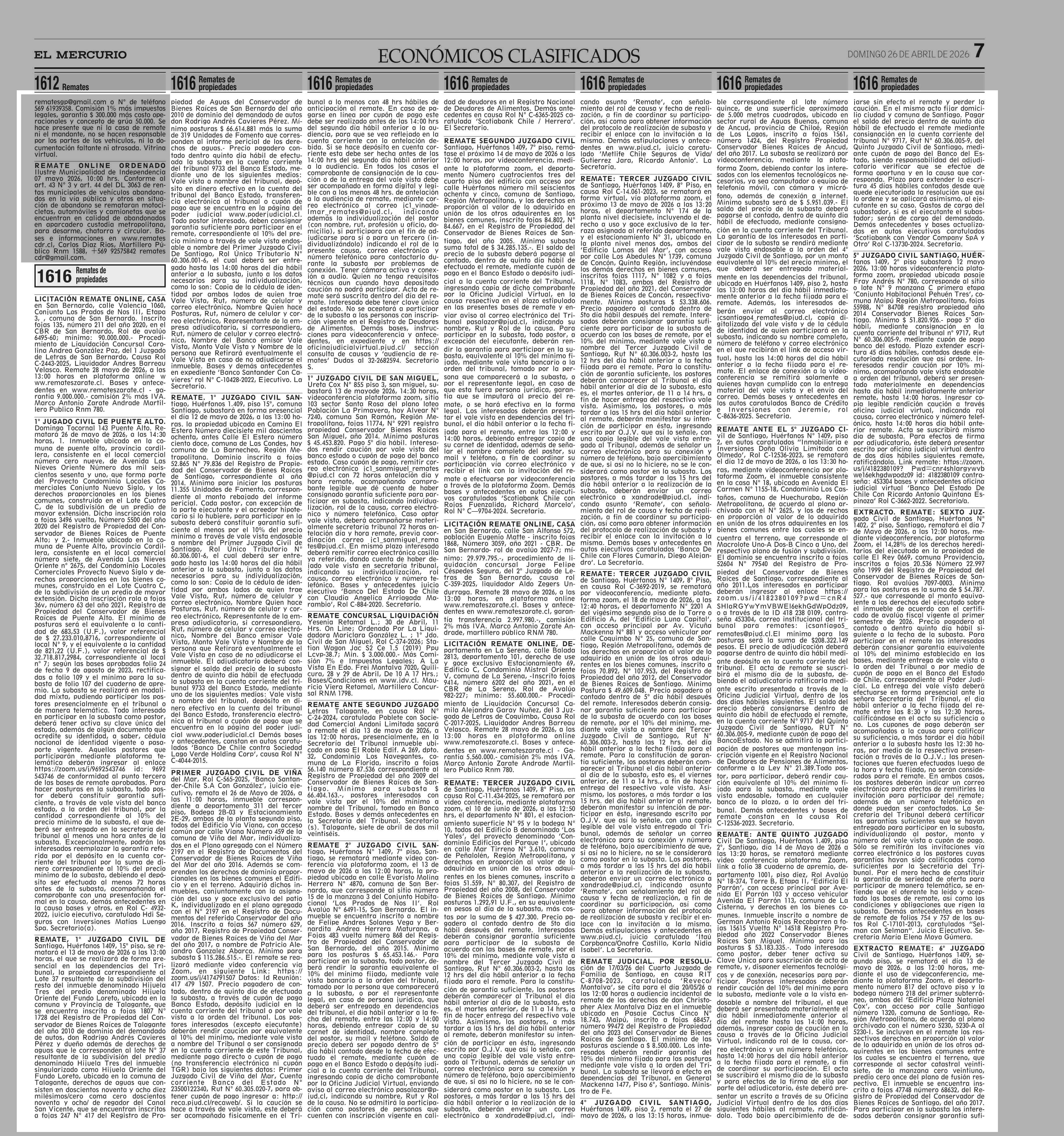 REMATES: Remates de propiedades 26-04-2026 El Mercurio |