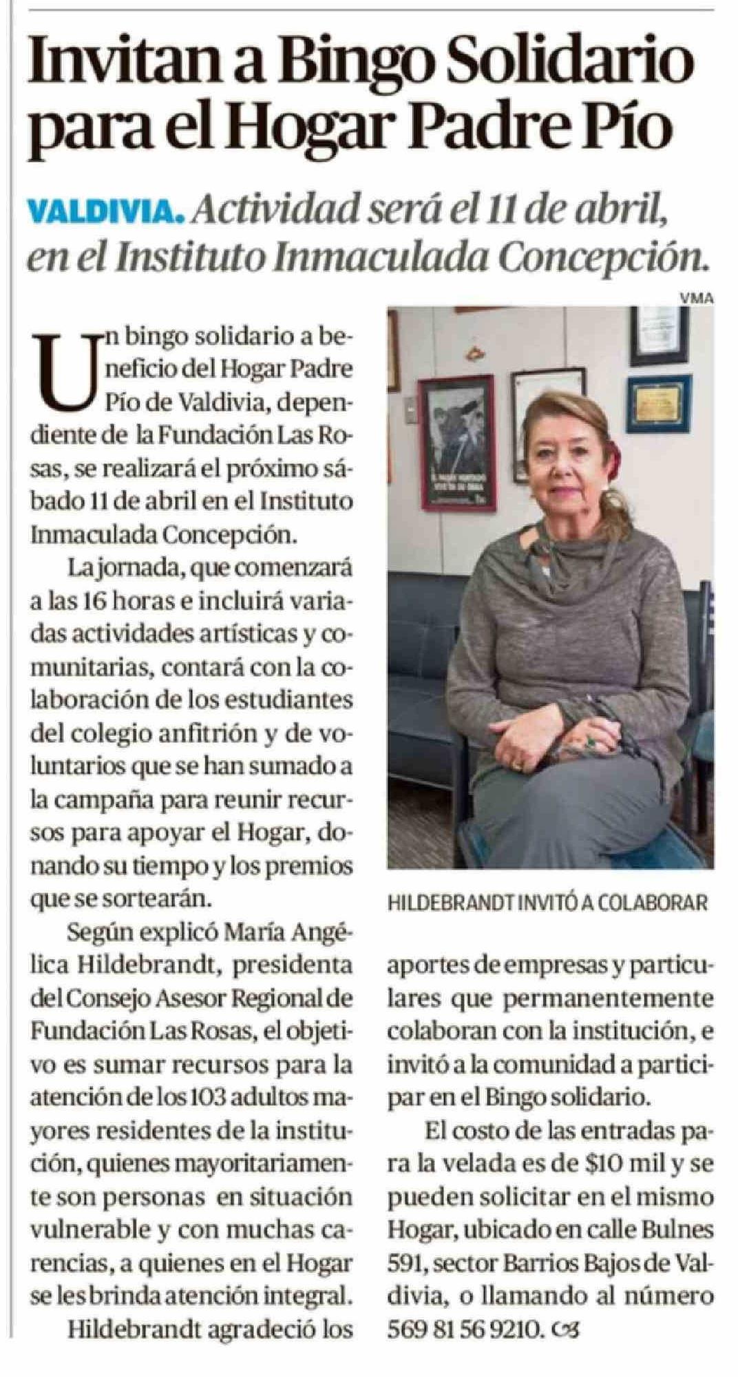 Título: Invitan a Bingo Solidario para el Hogar Padre Pio
