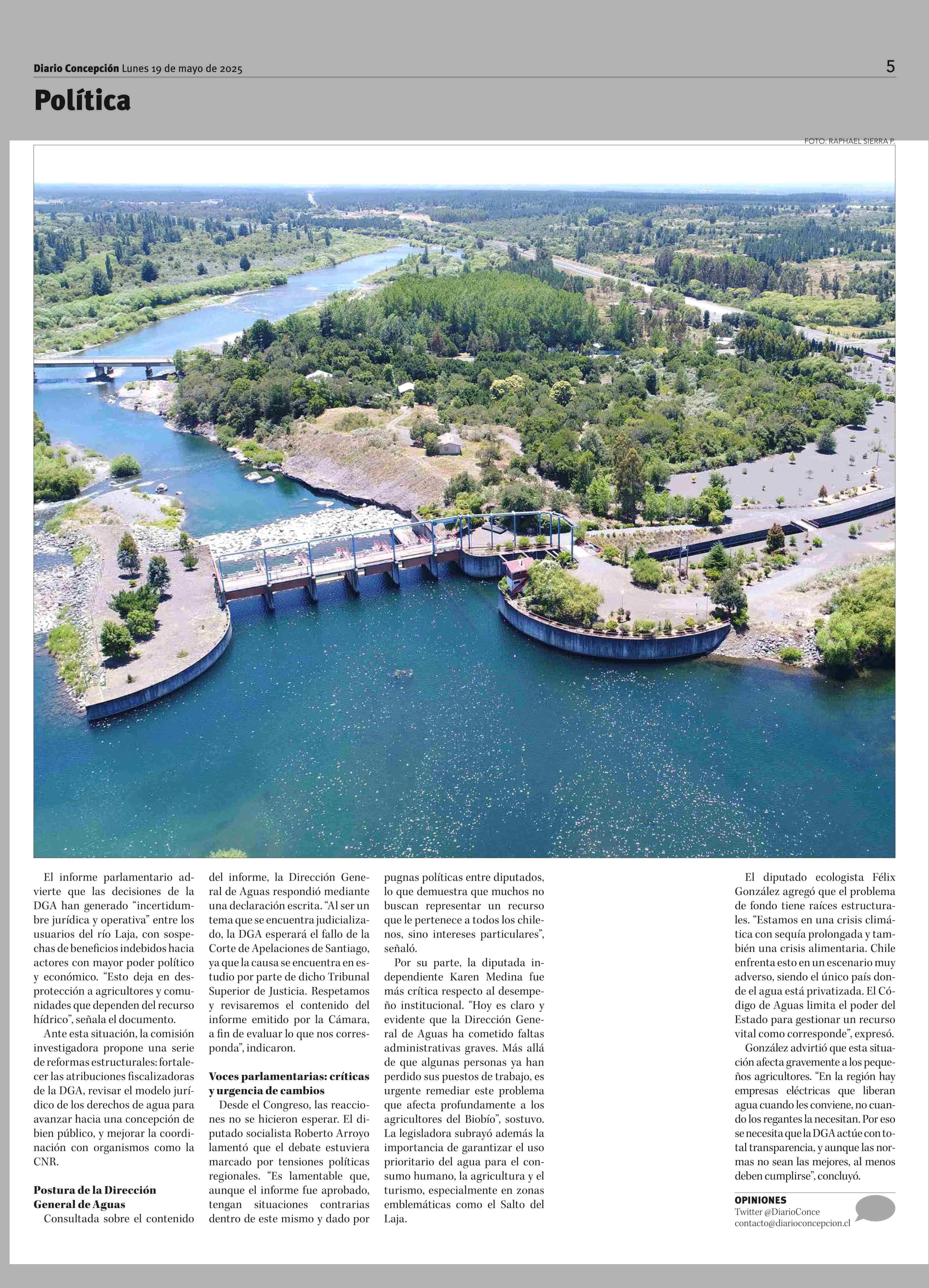 Río Laja: cuestionan rol de la DGA en conflicto por derechos de agua 19-05-2025 Diario Concepción |