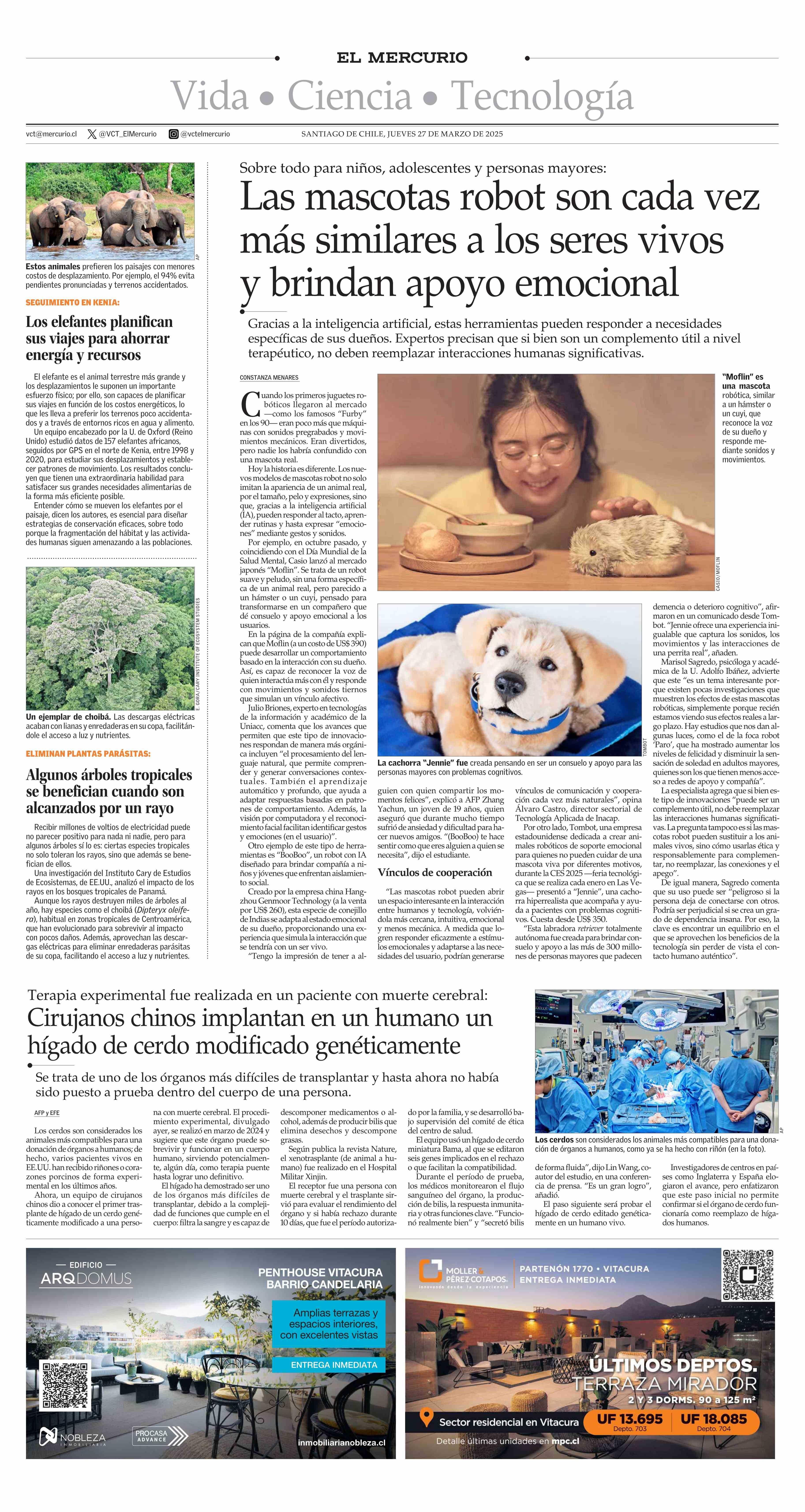 Cirujanos chinos implantan en un humano un hígado de cerdo modificado genéticamente 27-03-2025 El Mercurio |