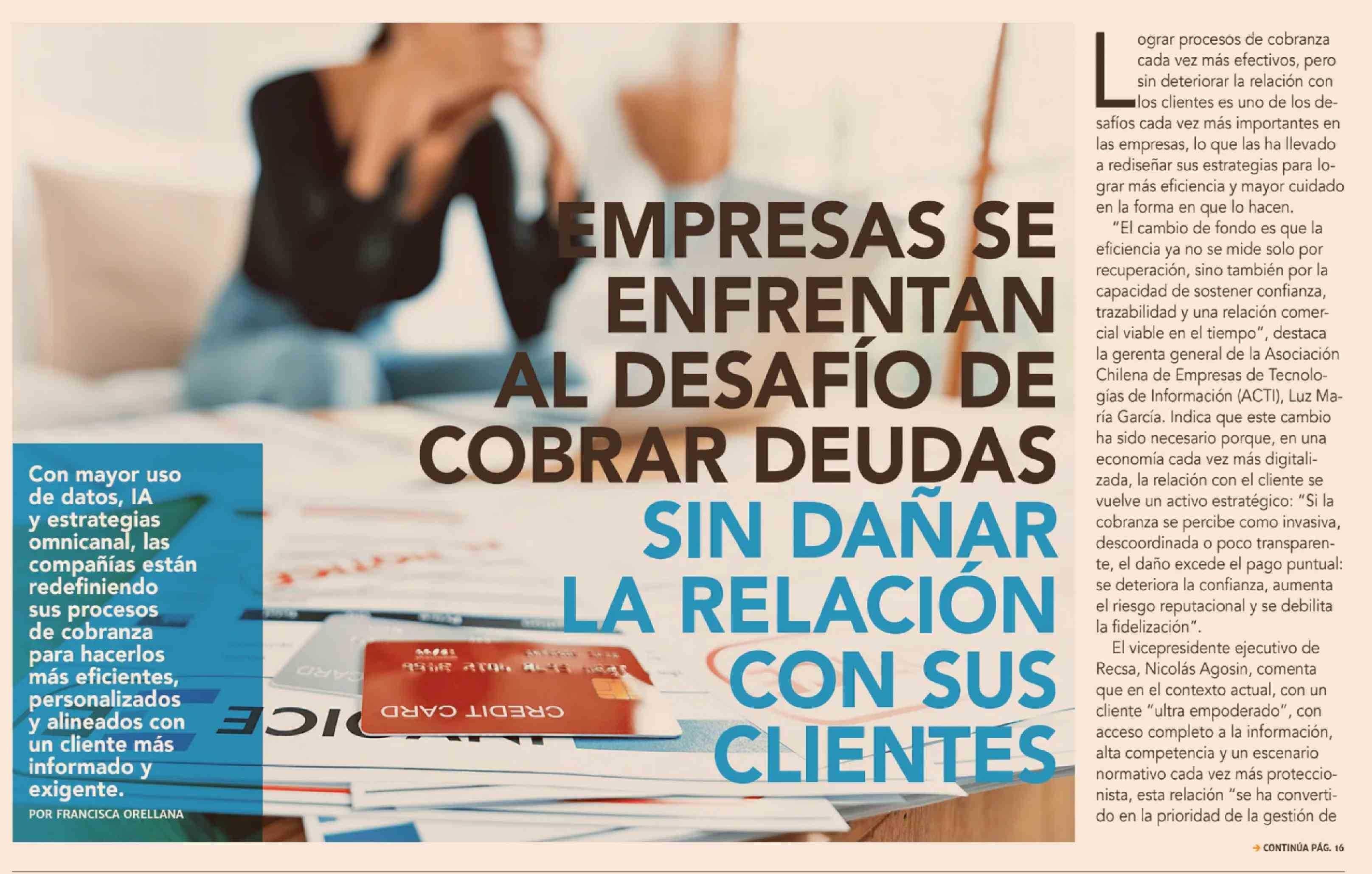 | Título: | EMPRESAS SE ENFRENTAN AL DESAFÍO DE COBRAR DEUDAS SIN DAÑAR LA RELACIÓN CON SUS CLIENTES |
