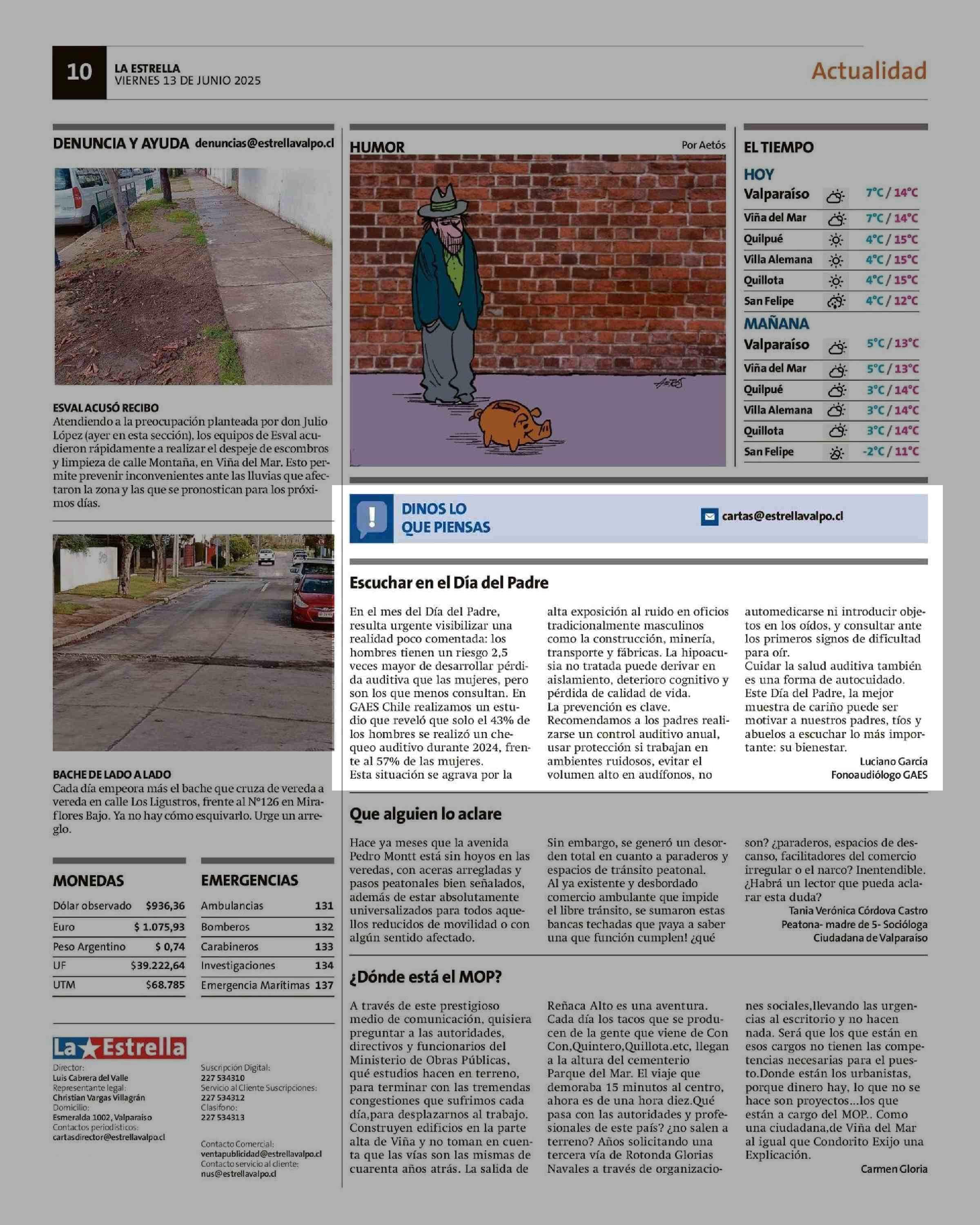 Cartas: Escuchar en el Día del Padre 13-06-2025 La Estrella de Valparaíso |