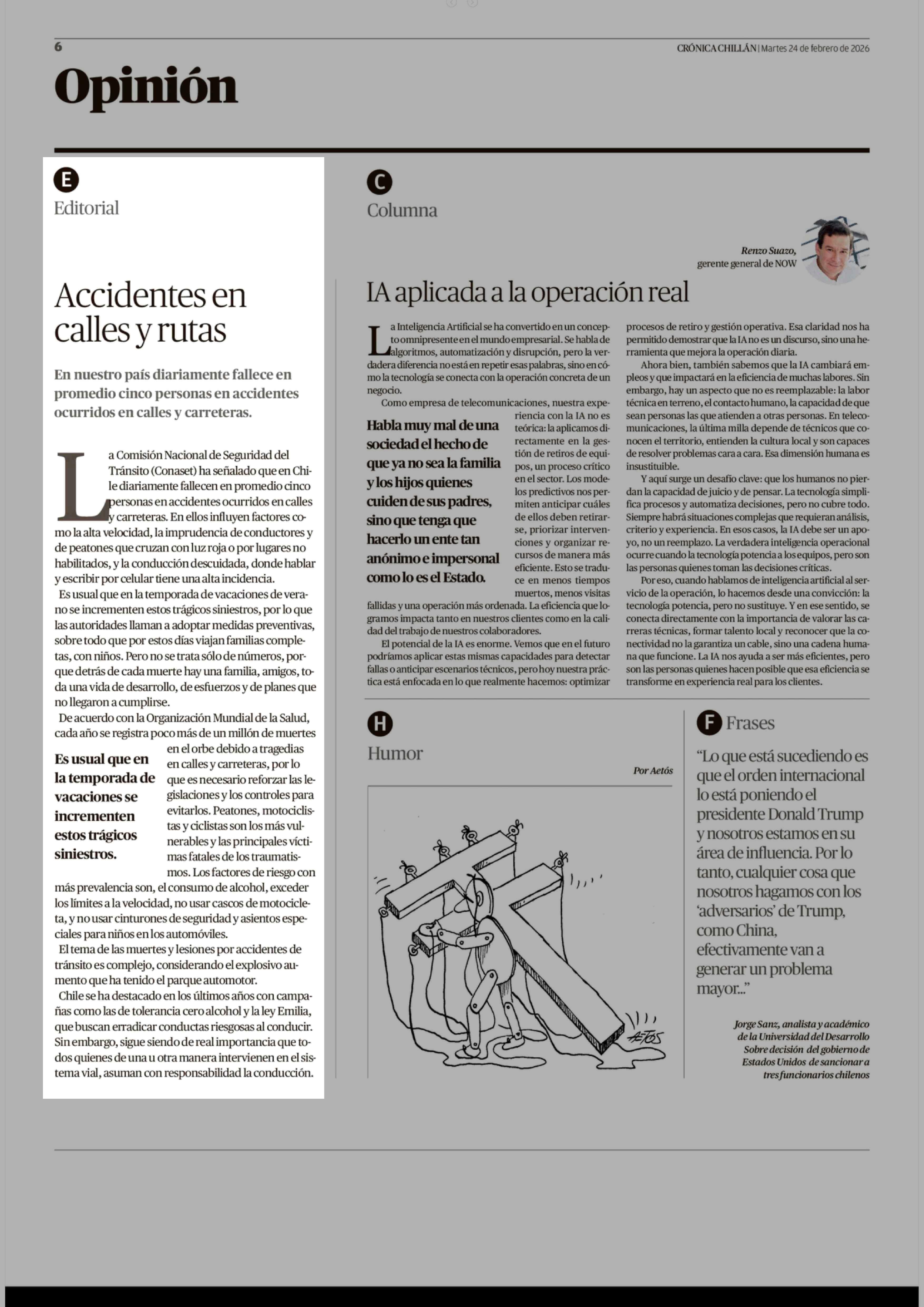 Editorial: Accidentes en calles y rutas 24-02-2026 Crónica de Chillán |