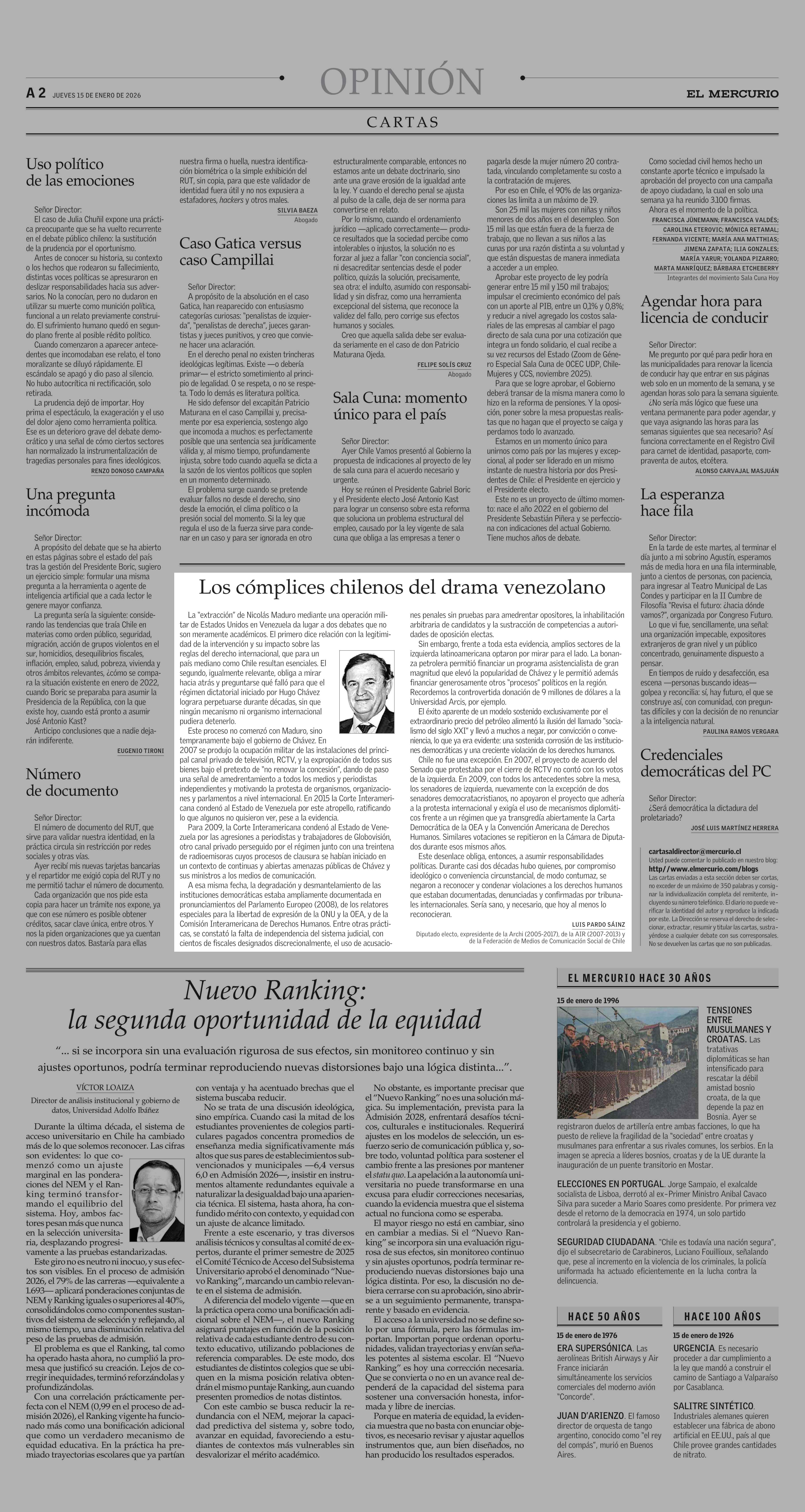 CARTAS: Los cómplices chilenos del drama venezolano 15-01-2026 El Mercurio |