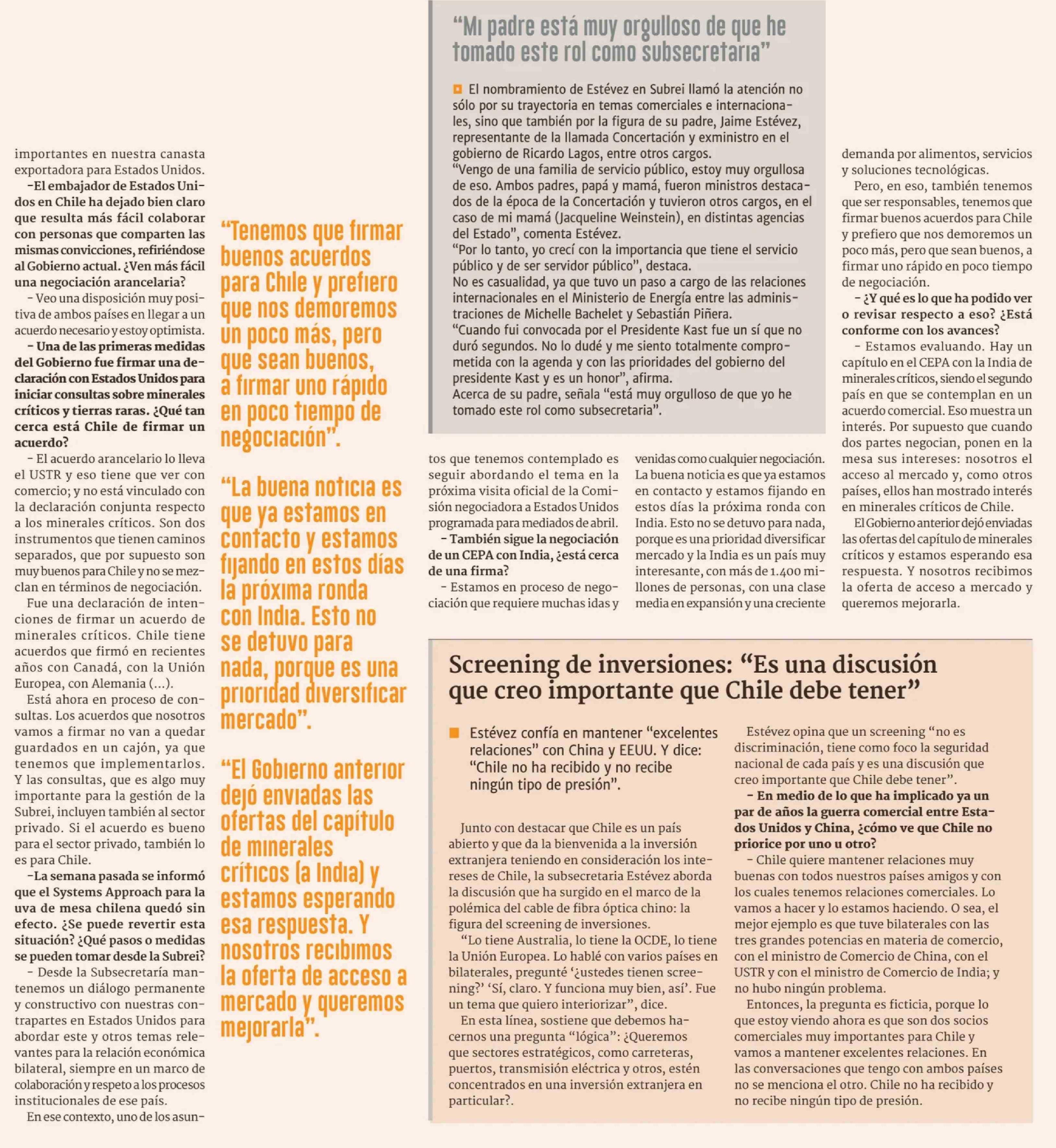 "No vamos a firmar un acuerdo arancelario (con EEUU) que no sea bueno para el sector privado' 06-04-2026 Diario Financiero |