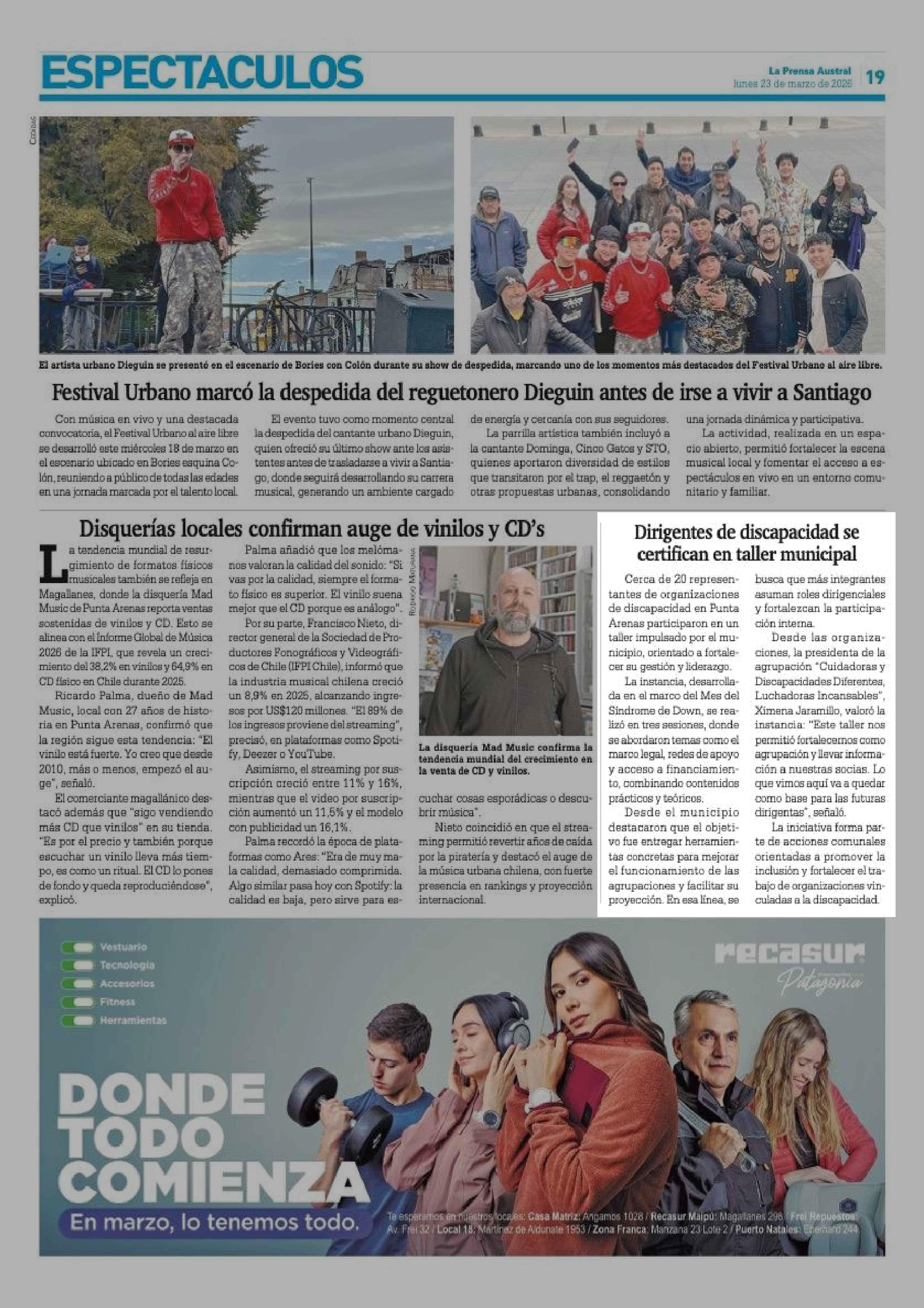 Dirigentes de discapacidad se certifican en taller municipal 23-03-2026 La Prensa Austral |