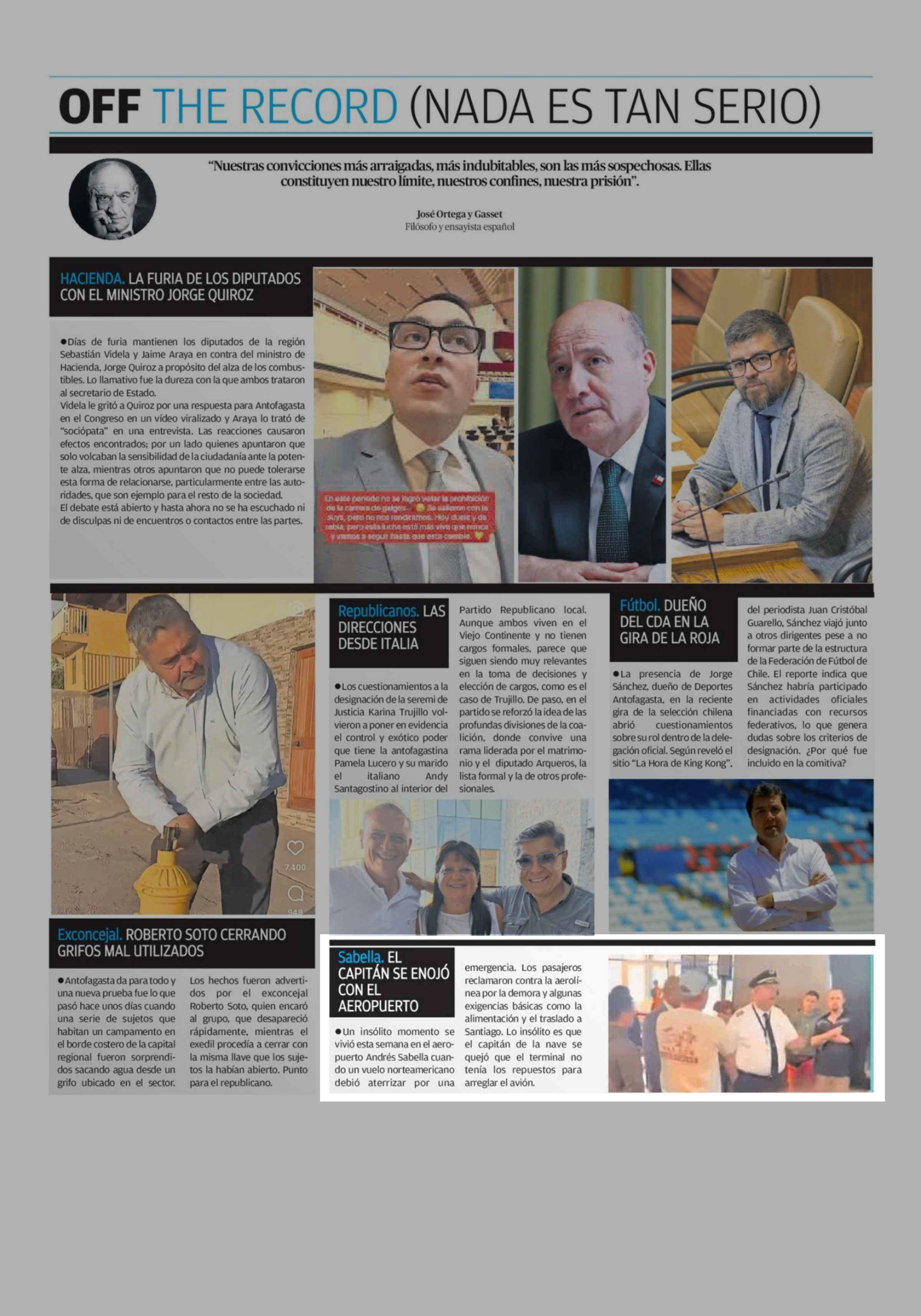 | Título: | Sabella. EL CAPITÁN SE ENOJÓ CON EL AEROPUERTO emergencia. Los pasajeros reclamaron contra la aerolínea por la demora y algunas exigencias básicas como la alimentación y el traslado a Santiago. Lo insólito es que el capitán de la nave se quejó que el terminal no tenía los repuestos para · Un insólit |