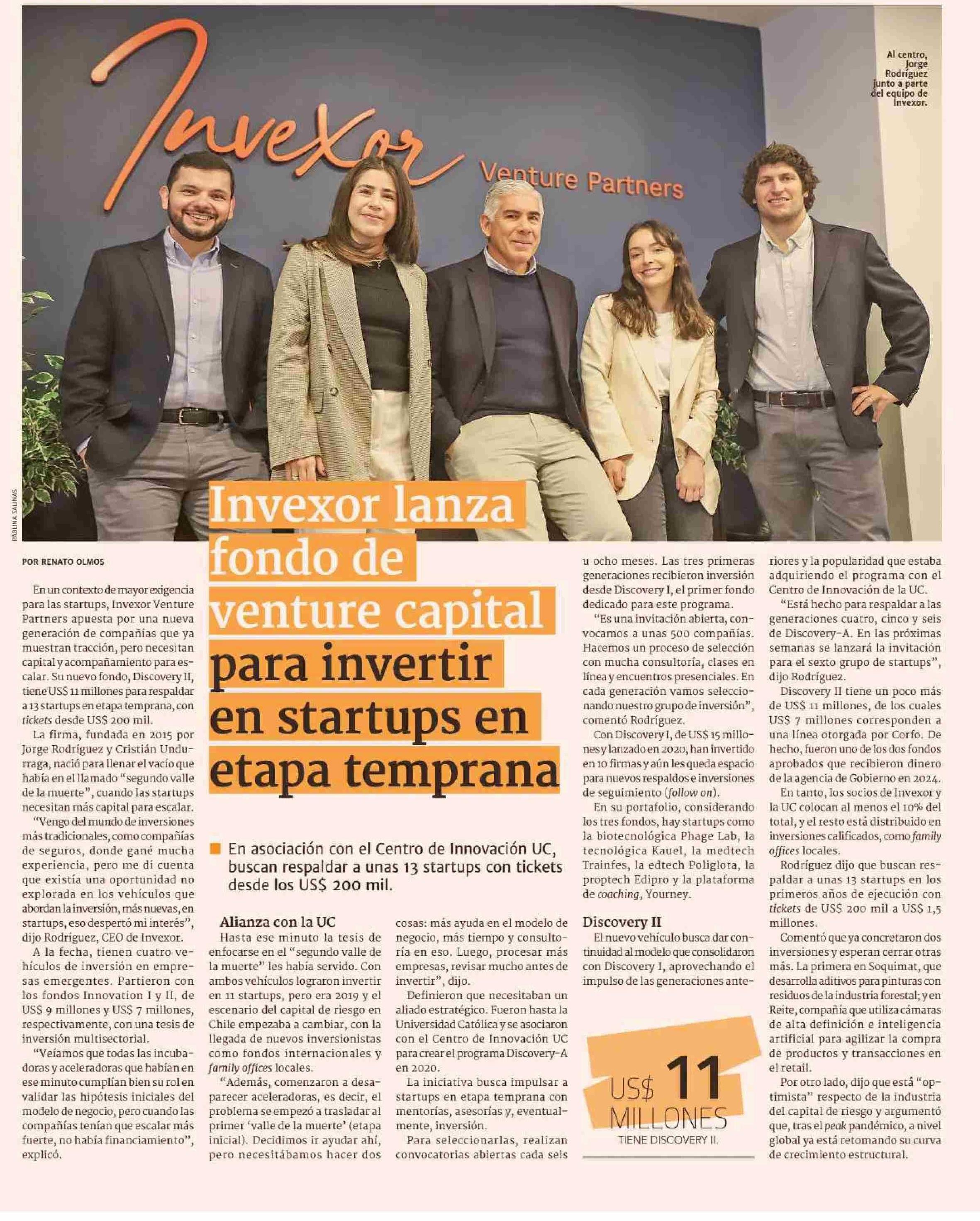 Invexor lanza fondo de venture capital para invertir en startups en etapa temprana 19-05-2025 Diario Financiero |
