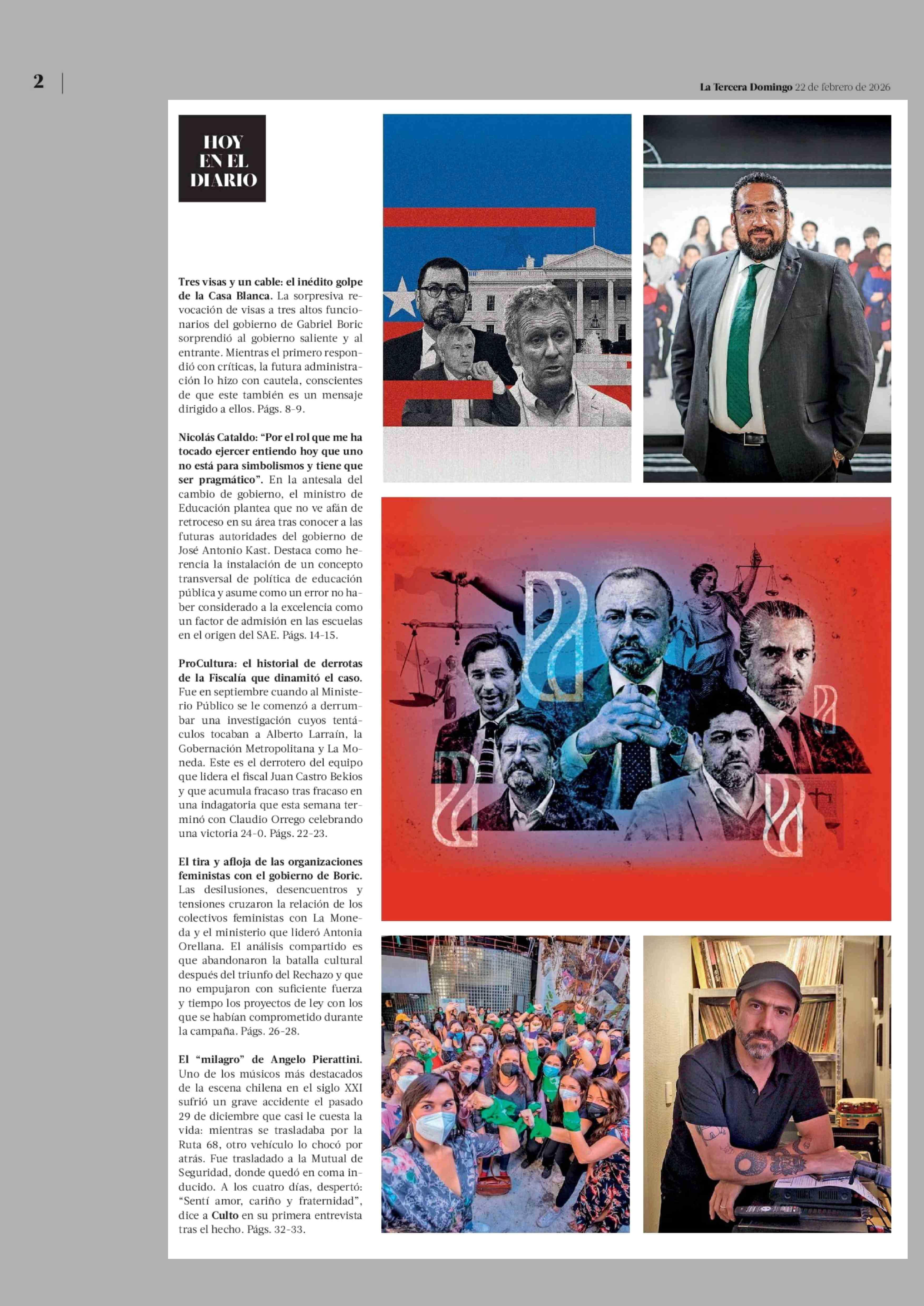 HOY EN EL DIARIO 22-02-2026 La Tercera |