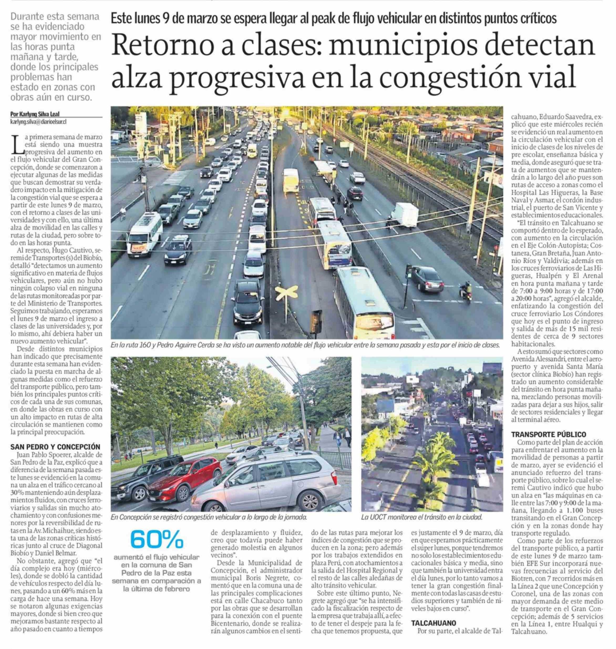 Retorno a clases: municipios detectan alza progresiva en la congestión vial 05-03-2026 El Sur |