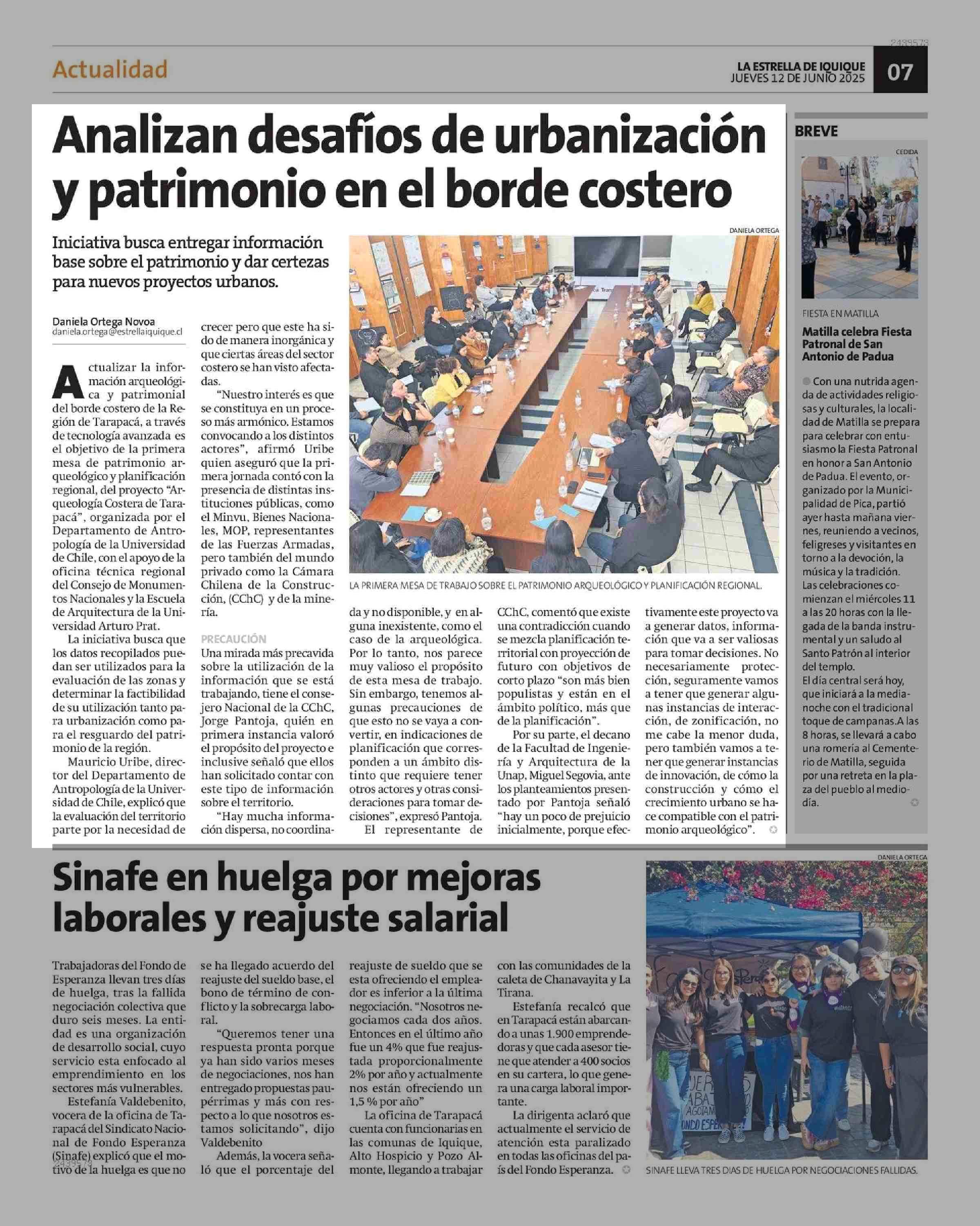 Analizan desafíos de urbanización y patrimonio en el borde costero 12-06-2025 La Estrella de Iquique |