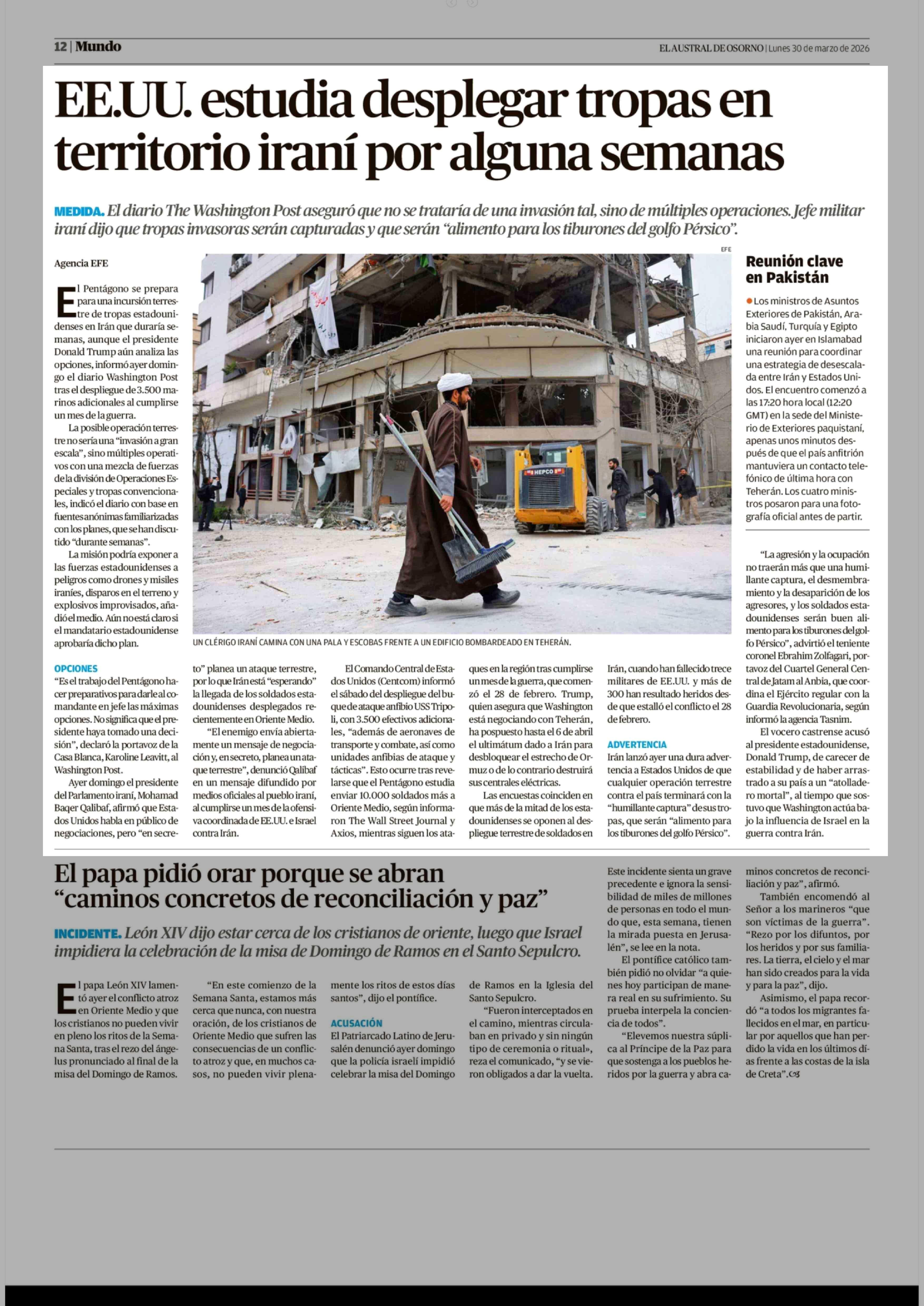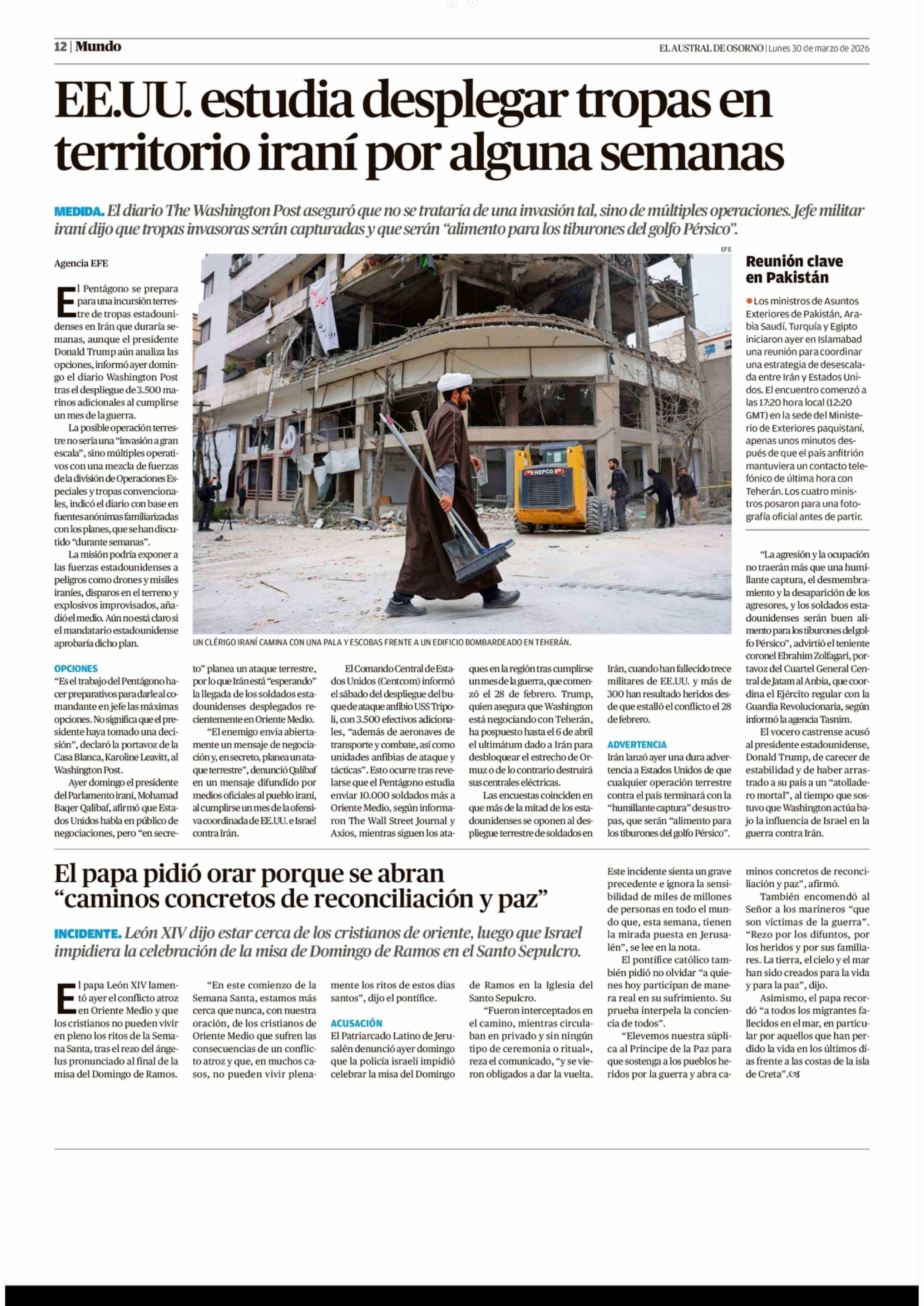 Título: EE.UU. estudia desplegar tropas en territorio iraní por alguna semanas