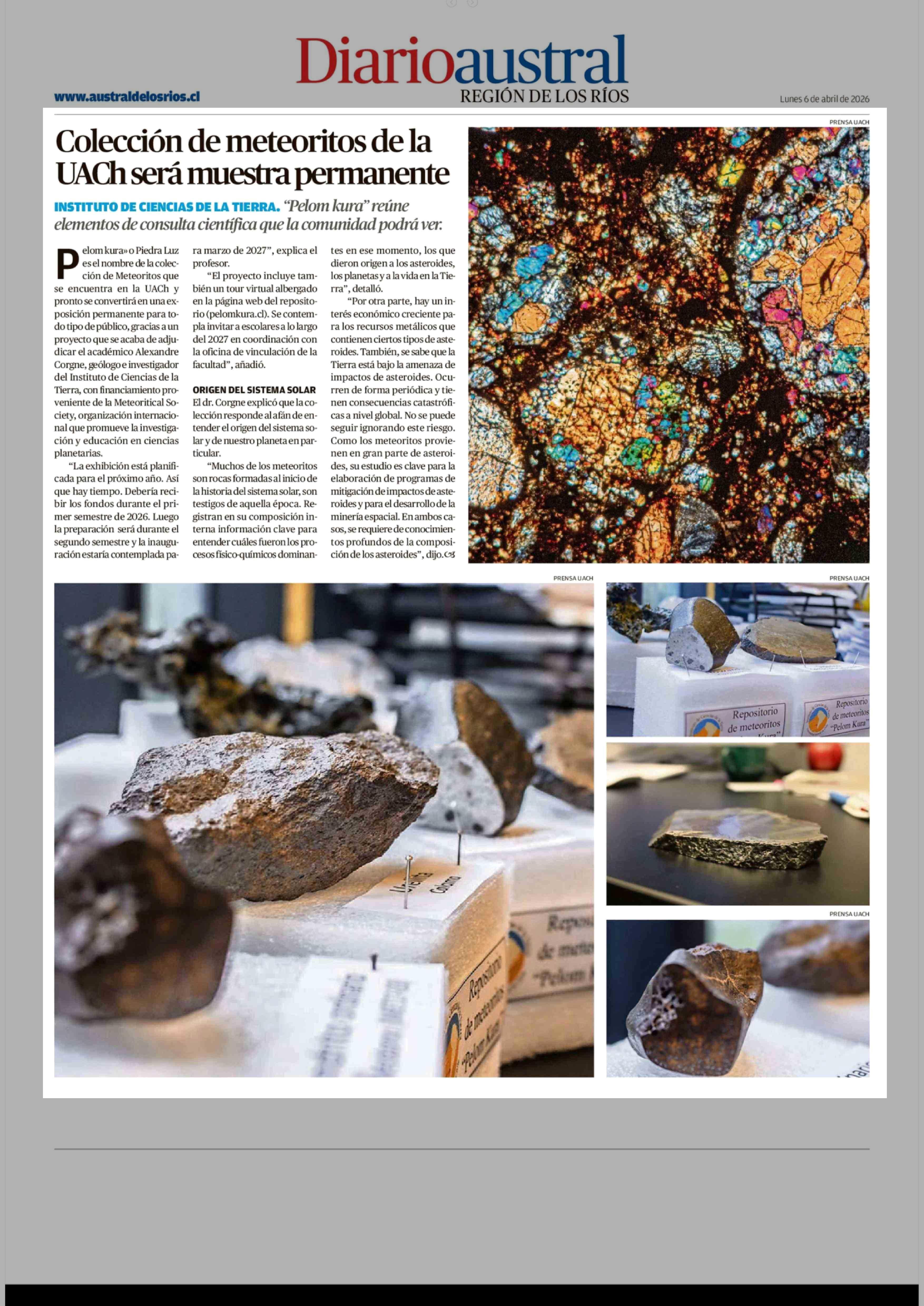 Título: Colección de meteoritos de la UACh será muestra permanente