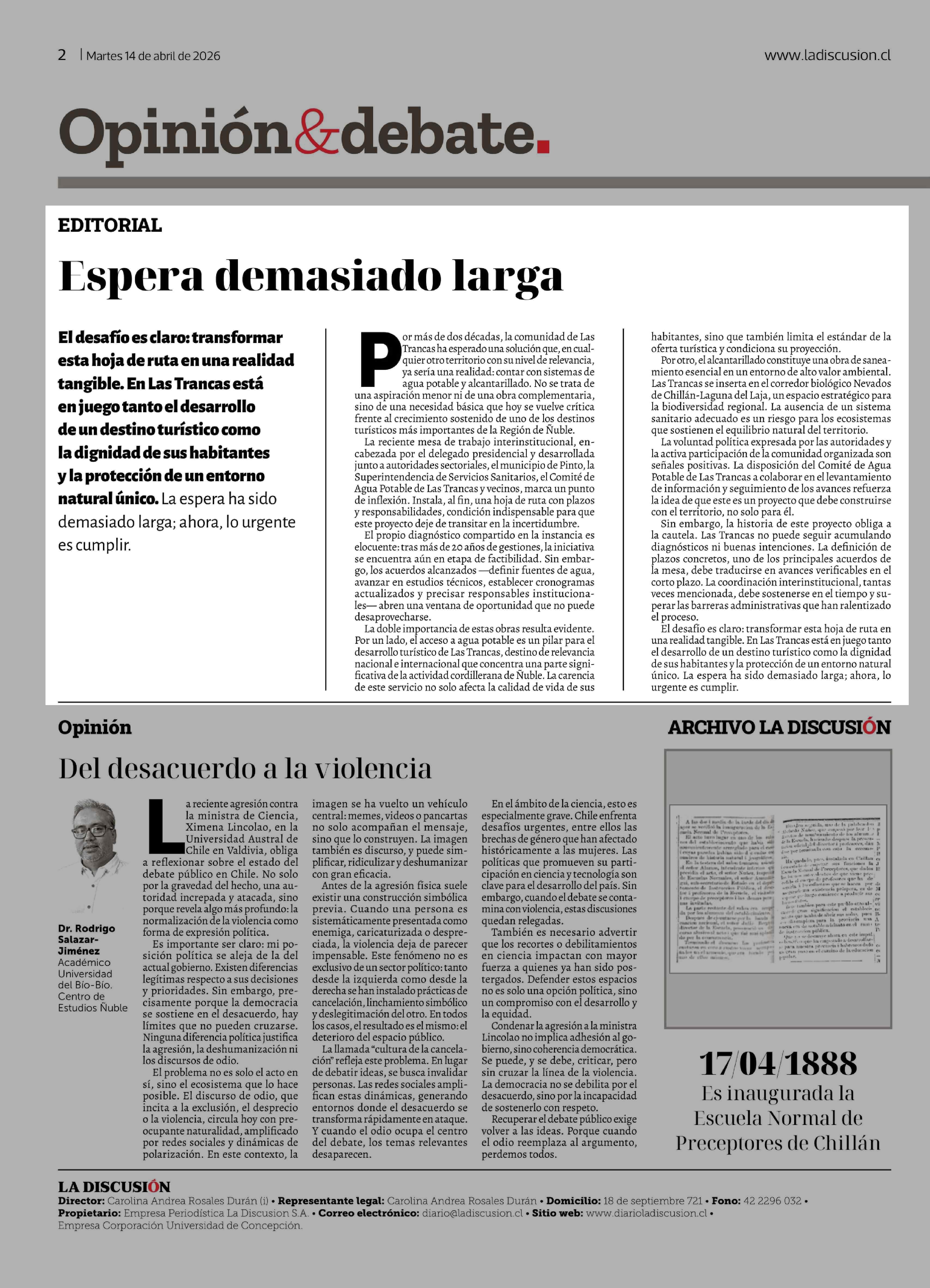 | Fecha: | 14-04-2026 | Sector: | Editorial | Región: | Región del Ñuble |