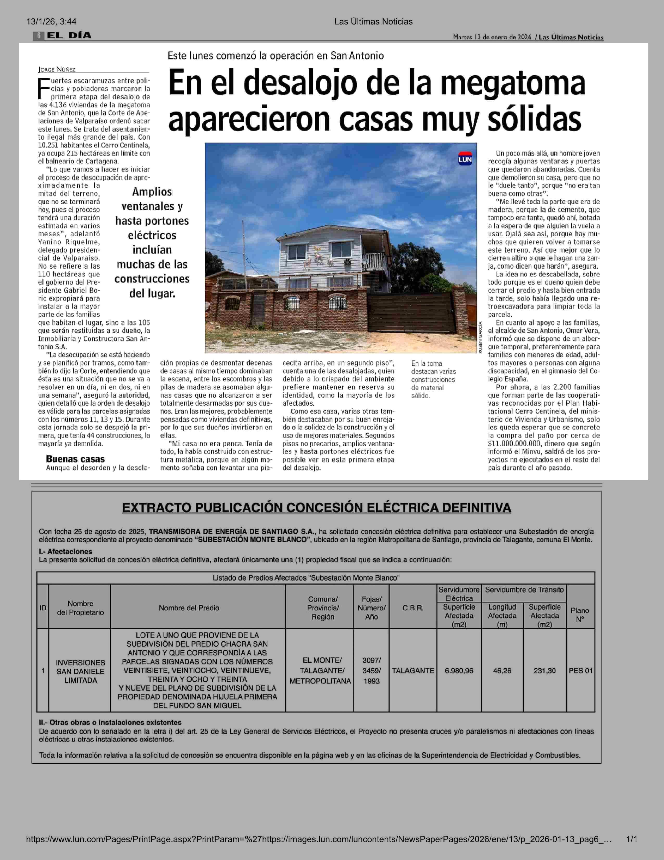 En el desalojo de la megatoma aparecieron casas muy sólidas 13-01-2026 Las Últimas Noticias |