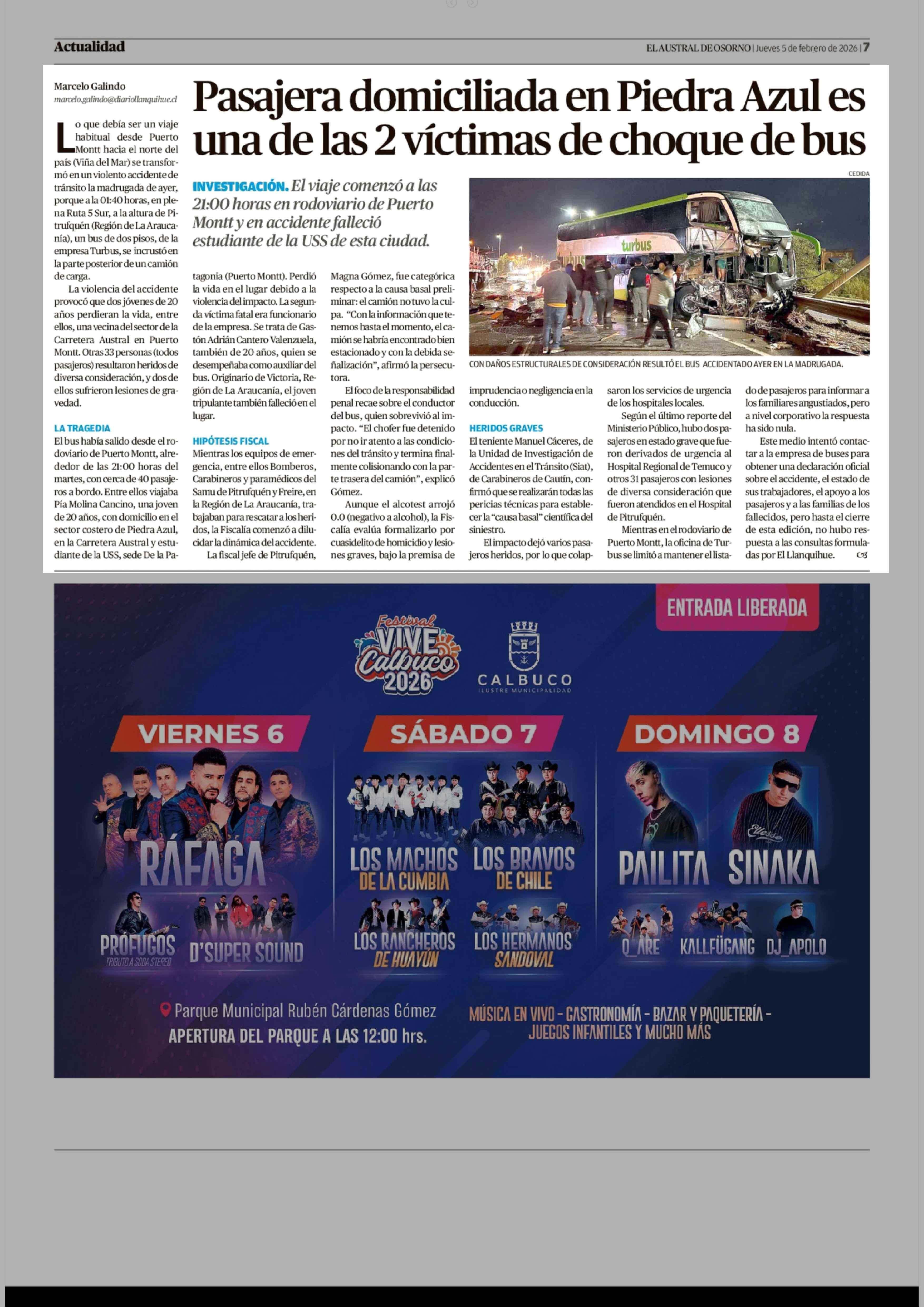 Pasajera domiciliada en Piedra Azul es una de las 2 víctimas de choque de bus 05-02-2026 El Austral de Osorno |