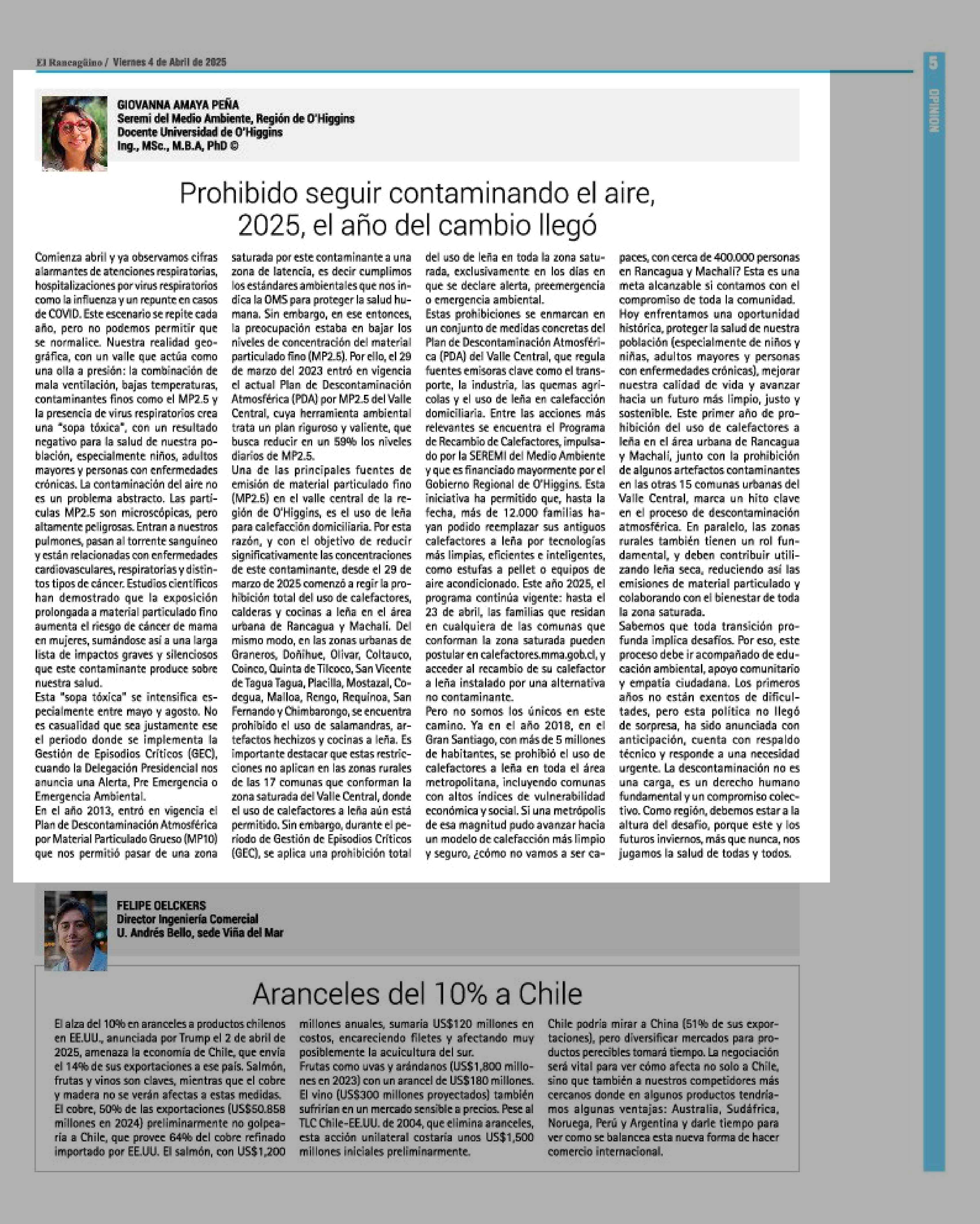 Prohibido seguir contaminando el aire, 2025, el año del cambio llegó 04-04-2025 El Rancagüino |