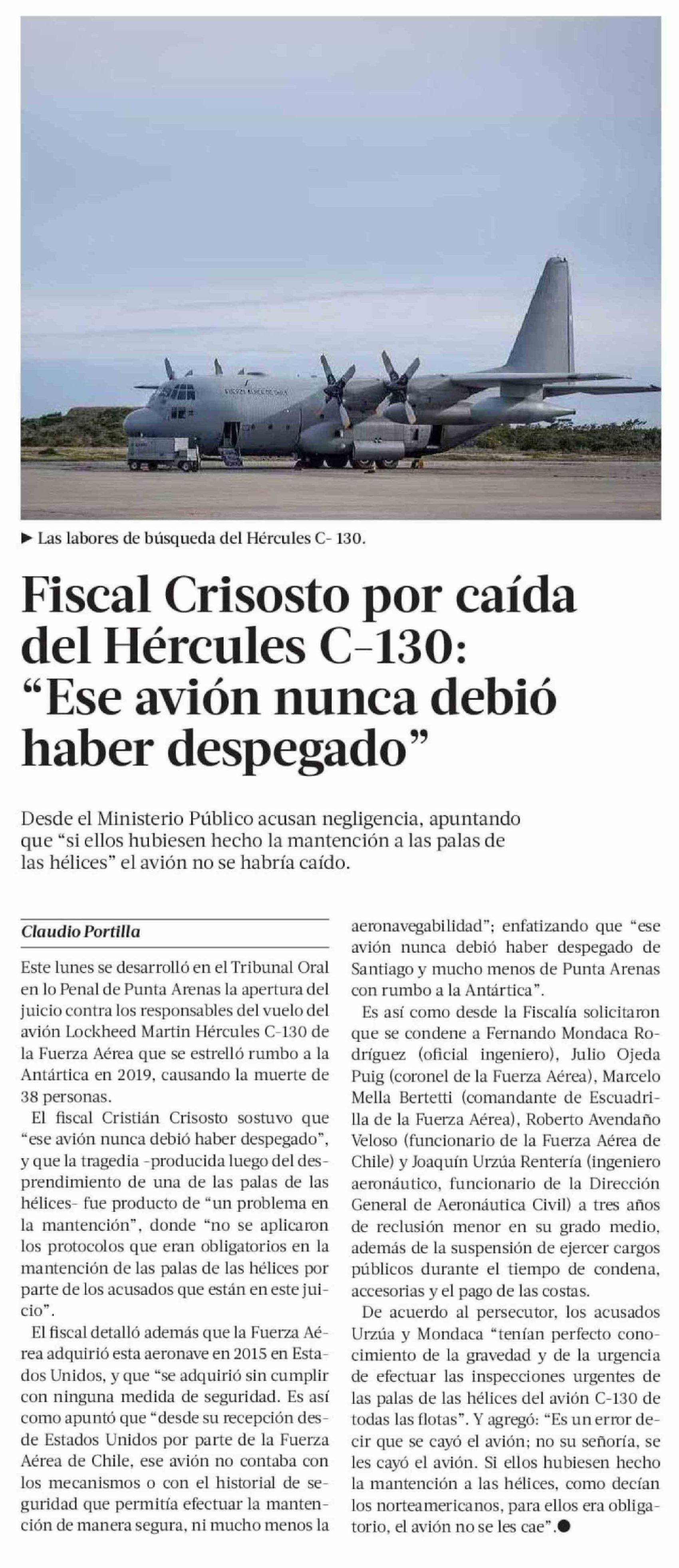 Título: Fiscal Crisosto por caída del Hércules C-130: "Ese avión nunca debió haber despegado"