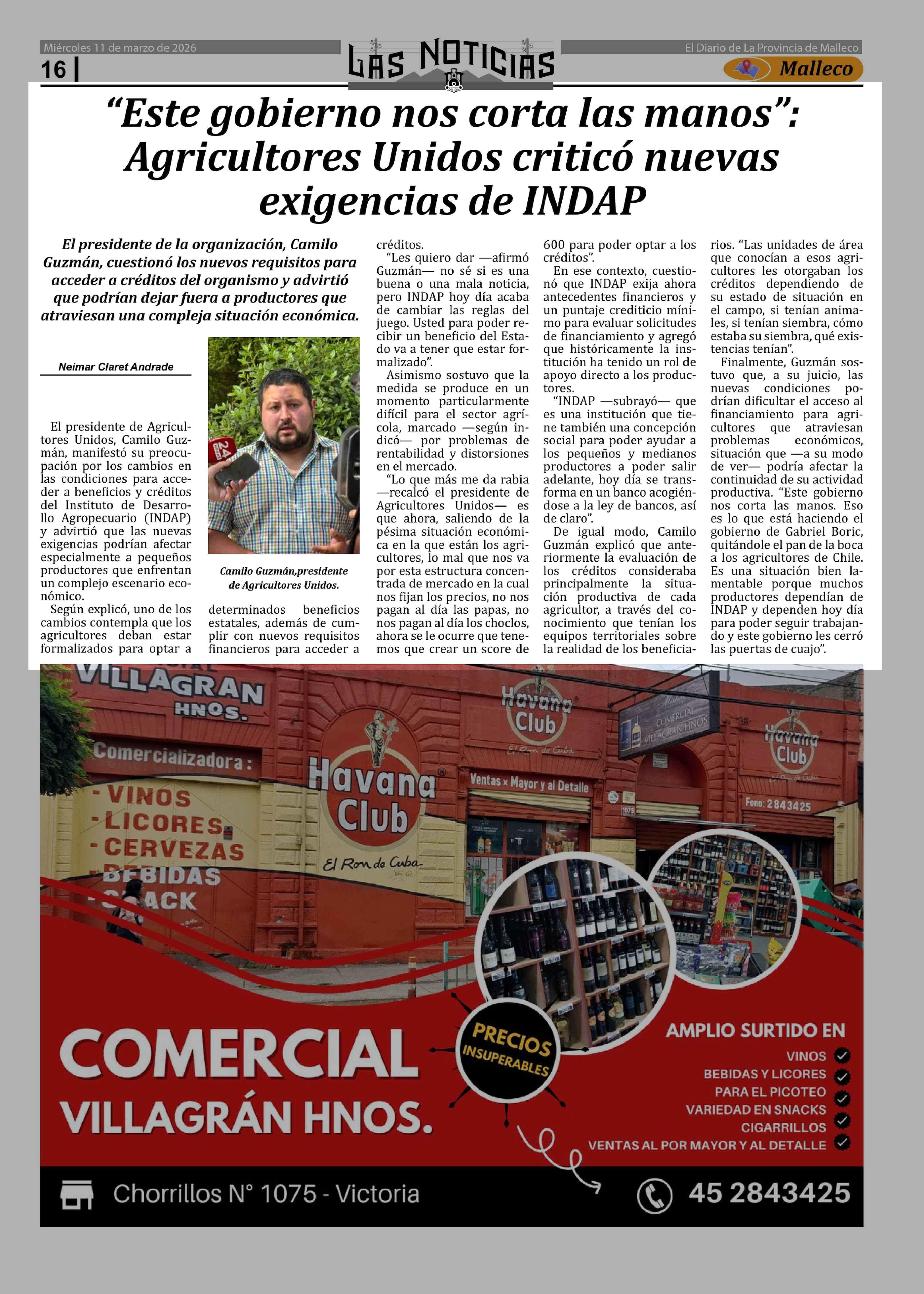 Título: "Este gobierno nos corta las manos": Agricultores Unidos criticó nuevas exigencias de INDAP