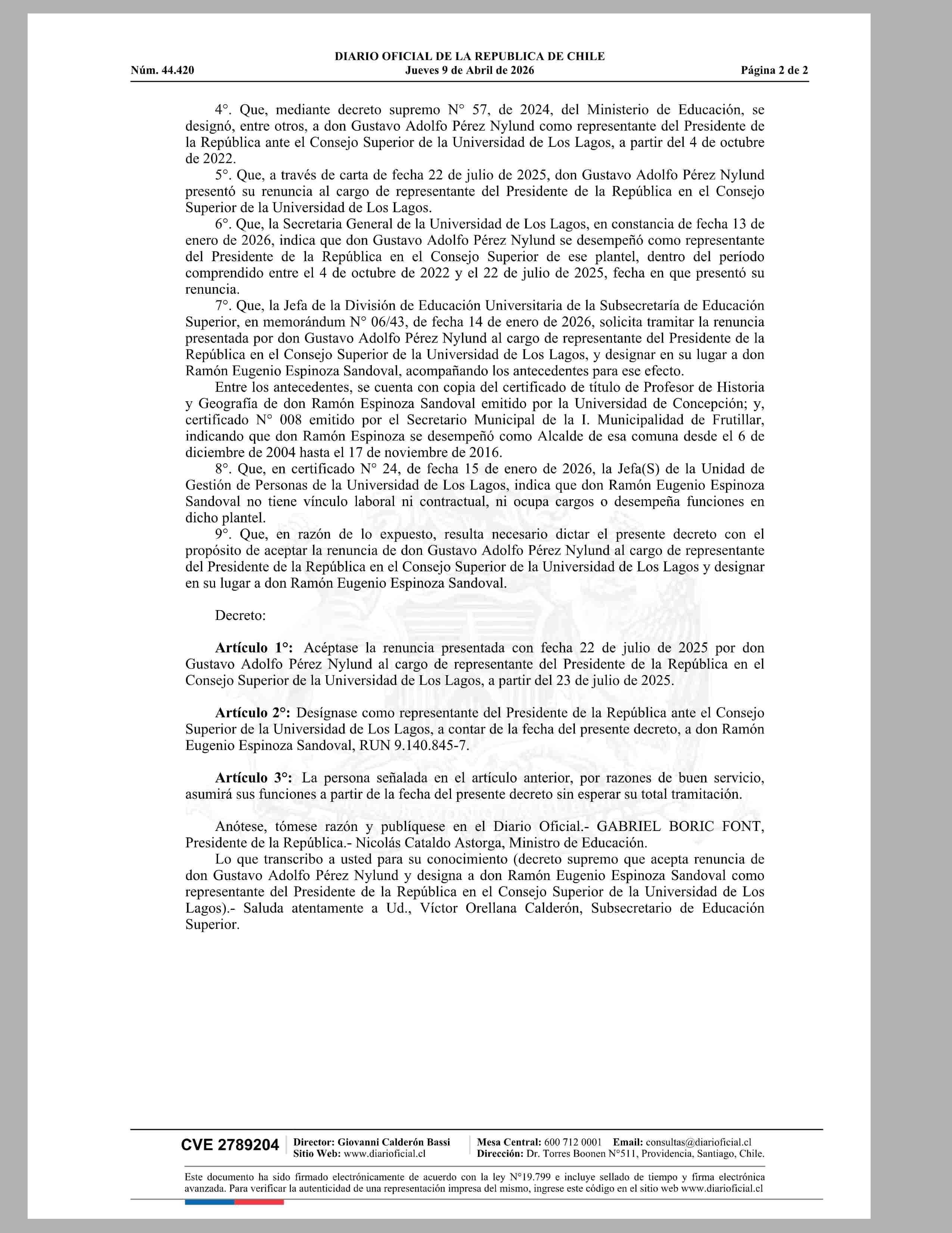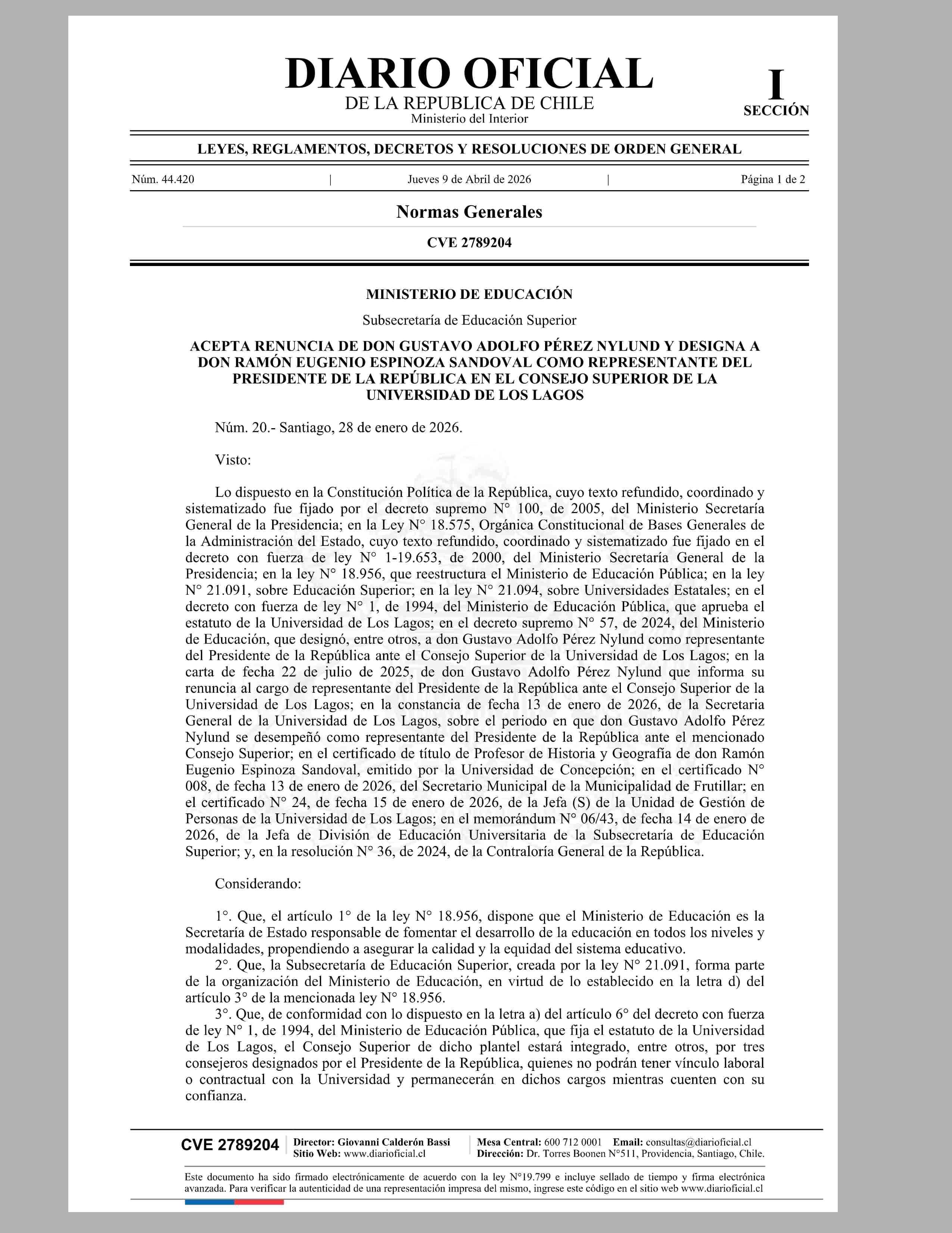 MINISTERIO DE EDUCACIÓN 09-04-2026 Diario Oficial Edición Electrónica |