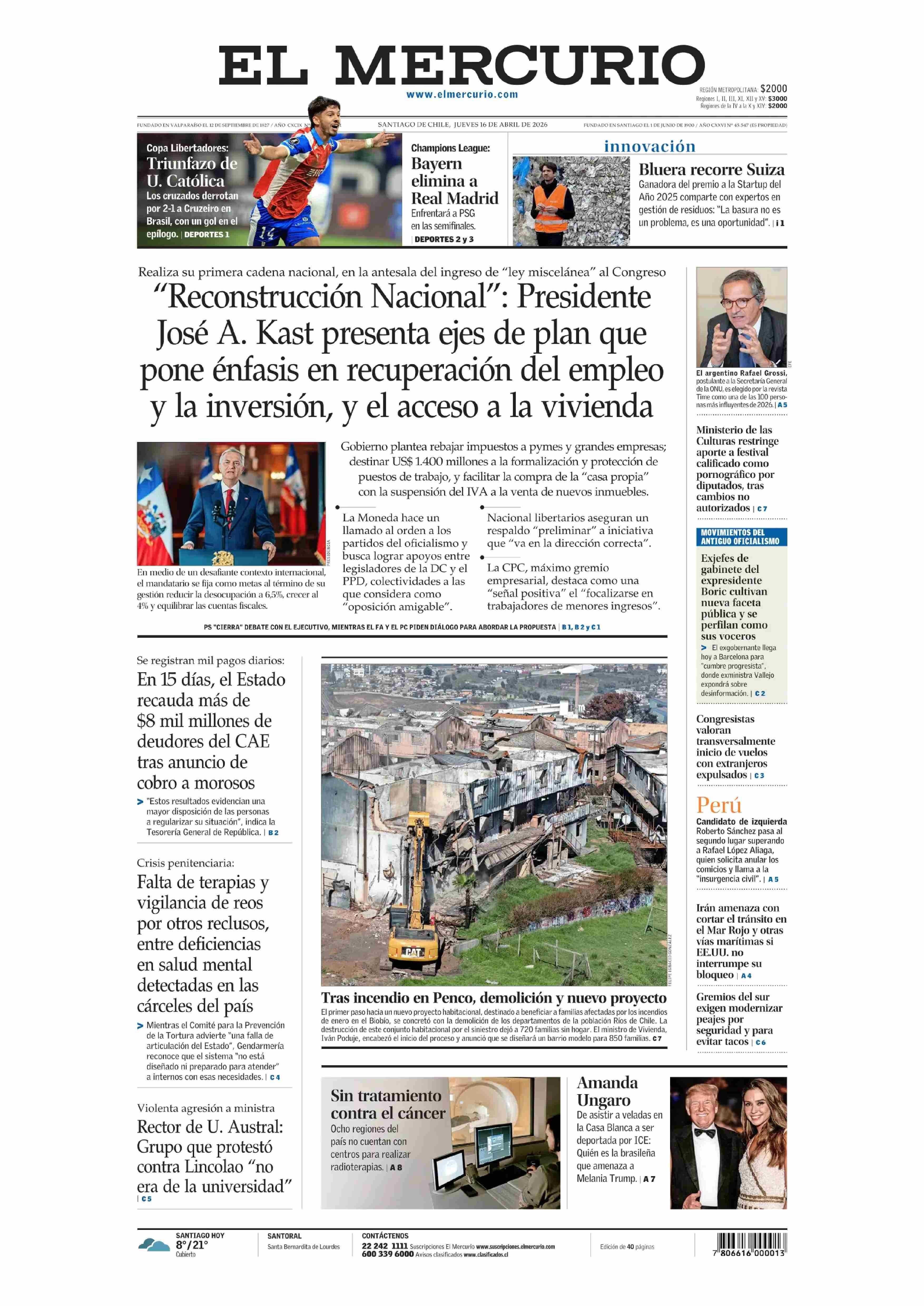 Fecha: 16-04-2026 Sector: Portada Región: Región Metropolitana de Santiago